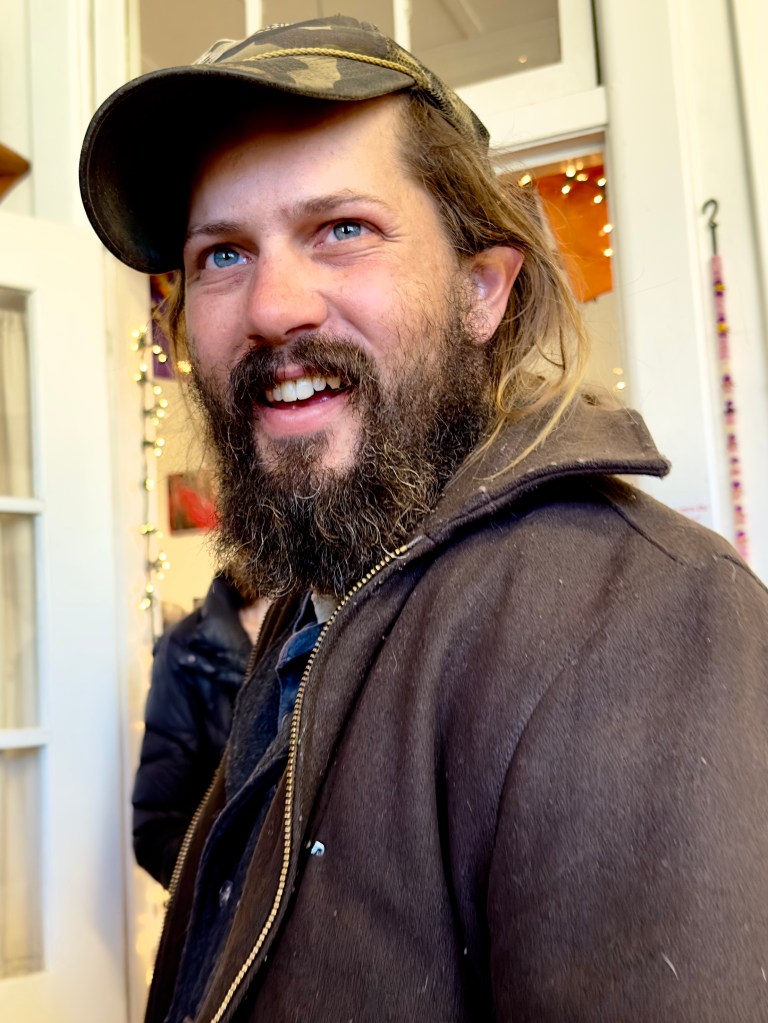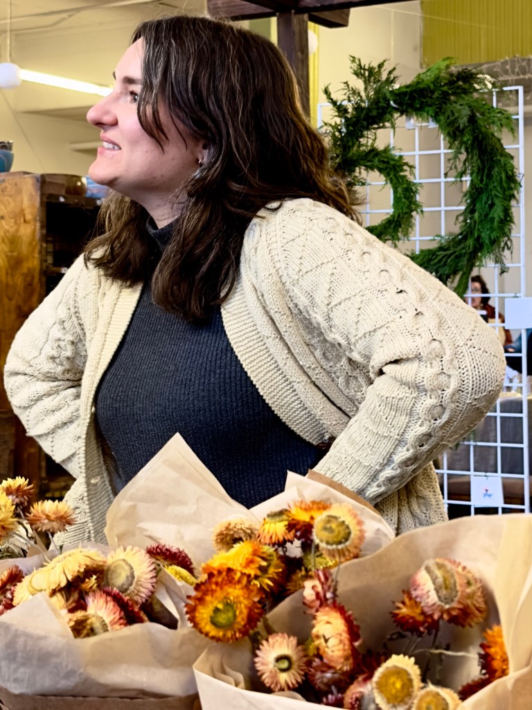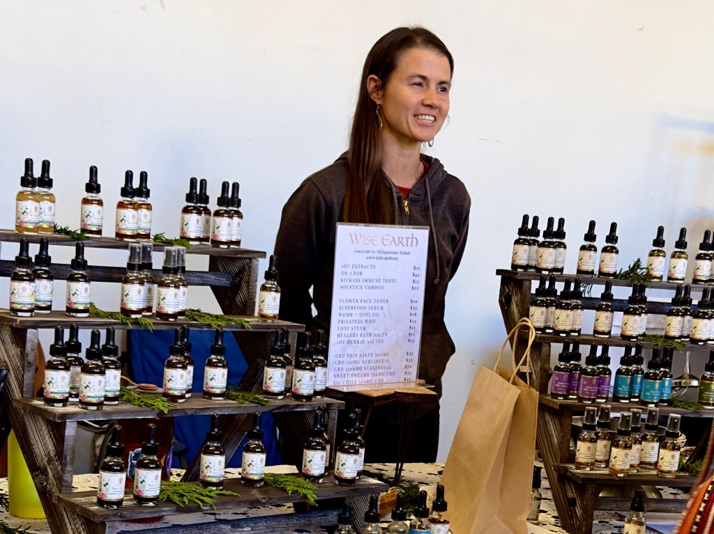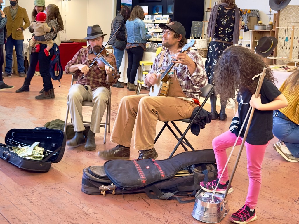 Every year Marshall, a half hour down the French Broad River from Asheville has a handmade Christmas Market in the what used to be the old high school but is now a building full of artist’s studios. What used to be the old gym and assembly room is now decorated with hanging lights with stalls set up by artists on the main floor and in many of the studios. Owl Bakery sold fancy pastries and Cecilia’s Kitchen offered Mexican food and musicians provided music.