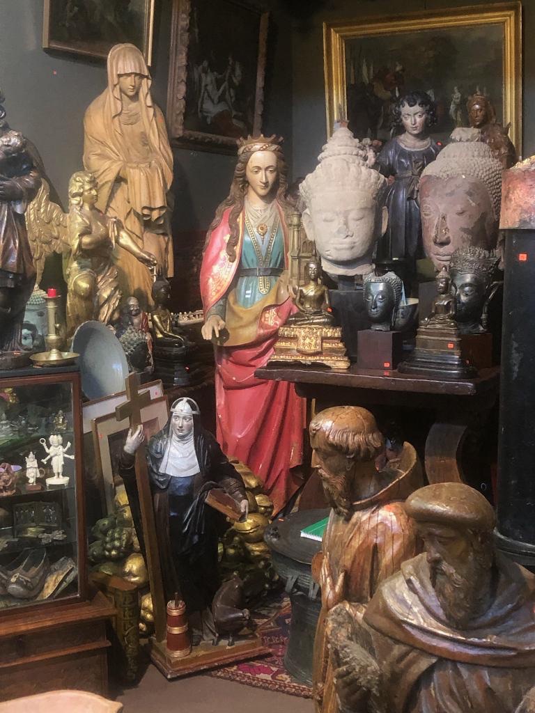 Today is a good day for getting out. The sun is shining in Swannanoa, but it is very cold, 21 degrees. So I went to the Paris flea market, instead, behind Montmartre where Todd and Susie are staying right now. Montmartre is where Susie and I stayed for a month, nine months ago, and so it feels like home. At the top of Montmartre is the white Sacre Coeur looking down on Paris. Kathe and I spent our second honeymoon here (the first one was a rainy, illness blighted disaster) fifty years after we married. My brother guided us to the Hotel Tim, the location of which was the setting for his unpublished novel, The Nude I Knew In Paris. So it is good to be back. When you walk around Sacre Coeur and down the other side of the mountain you come to the gigantic Paris flea market which is actually seven or eight markets combined into one, ranging from the outdoor street vendors to permanent elegant shops. So this is where I went with Susie and Todd this morning. I am including some of the photographs that Susie took. Nothing has changed from nine months ago except it is a little chillier.