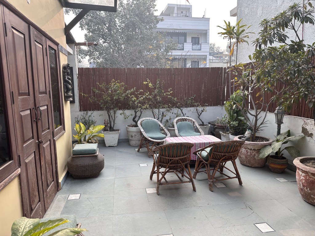 Since I had last been here with Kathe and her friend Elke four years ago Uschi’s husband, Ajneesh, a wonderful guy had died of pancreatitis at 67. We commiserated with each other over our loss and she made me comfortable with breakfast and later dinner. I have a beautiful rooftop room with a terrace with lots of plants outside. Susie told me to keep the door closed because gangs of monkeys will steal anything I leave outside. She and Todd stayed in this same room while here a few days ago and a gang of marauding monkeys had turned over the flower pots and caused general havoc. I am back in India and as I write this at 3 in the morning, afternoon in Swannanoa time which is why I am awake, I hear a dog barking in the distance. Often the sounds of dogs seem to move like a wave around Delhi, rising to a crescendo and then falling and then moving on to the next block and the next block. Delhi at night.