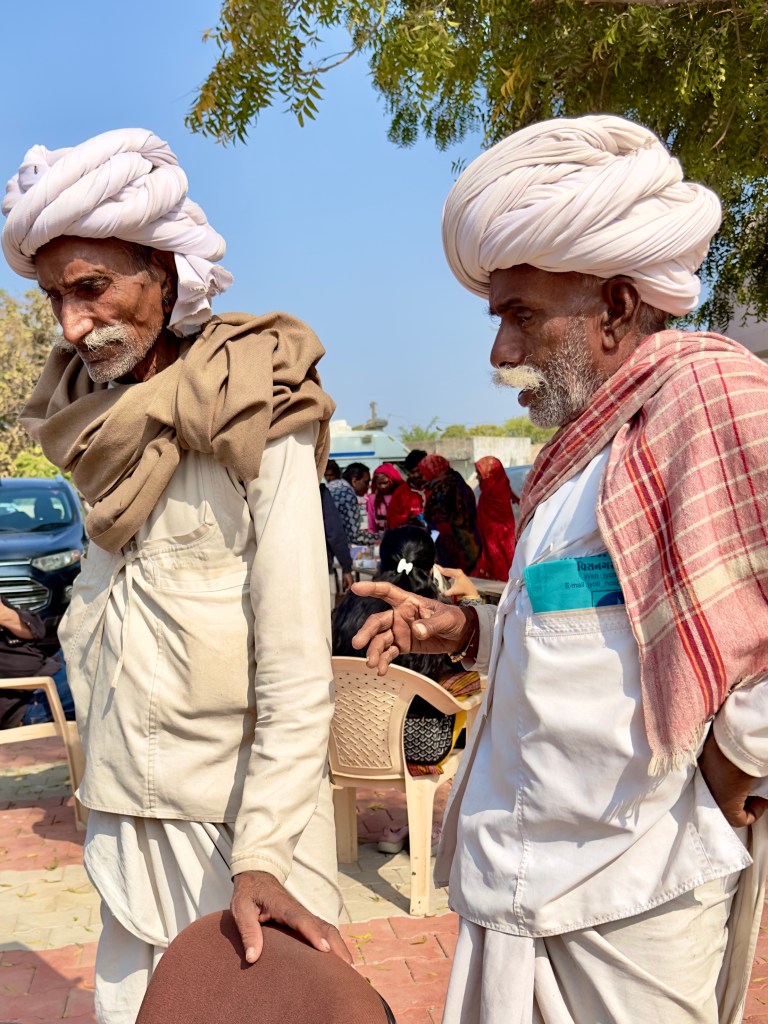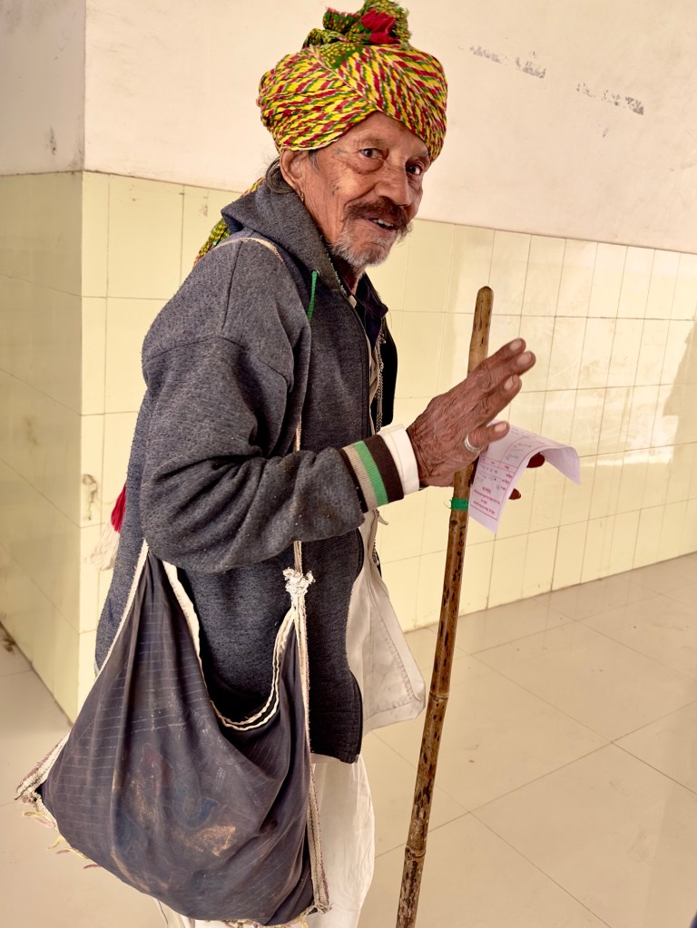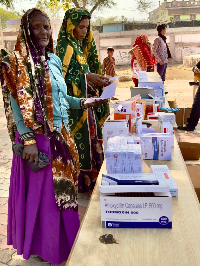 The last Saturday of the month a team of about 15 volunteers—doctors of several specialities and pharmacists and helpers—drive the 120 kilometers, about 70 miles, from Vishvanagar to Virampur and put on a three hour medical camp for tribal villagers who otherwise can’t afford good medical care. Tribal villagers arrive with their problems and are registered and then assigned to doctors where they stand in a line and are looked at. For any medical problems that can be dealt with immediately they are then given free medicines from a large store of medicines the doctors bring with them. If people have a larger problem such as needing a cataract operation they are later given transportation by the Virampur Ashram to the Eye Hospital in Vishvanagar where they are operated on free of charge. Anyone who can afford to pay for a cataract operation is charged 2500 rupees ($31.25).