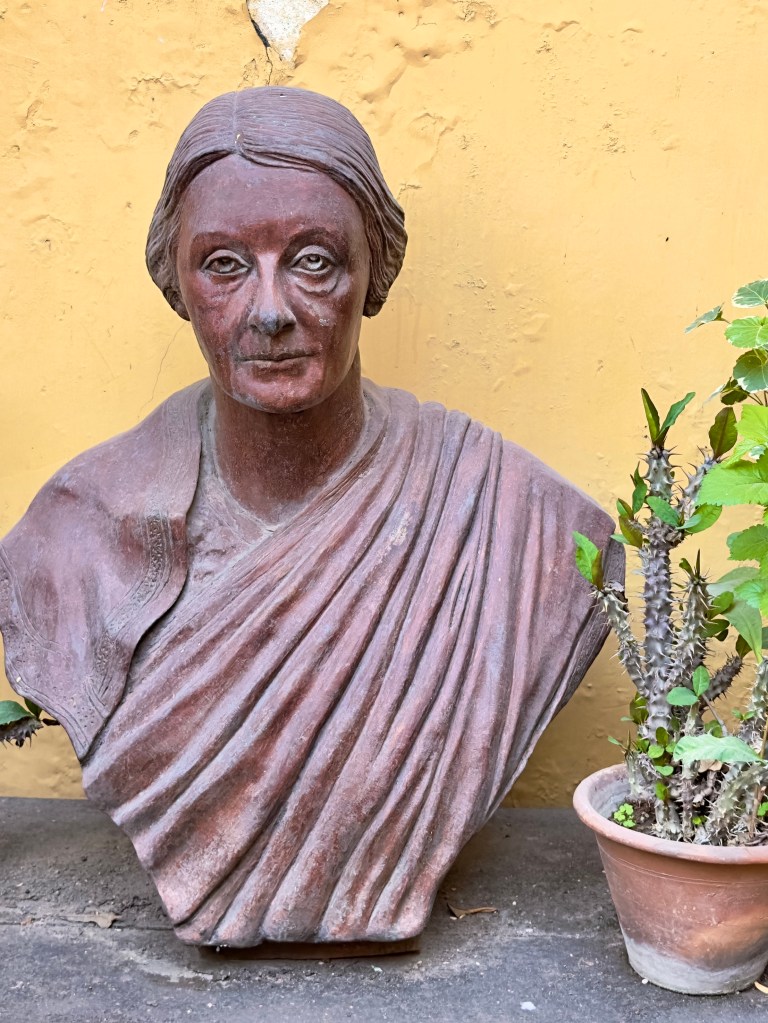 Alice Bonner was a rich Swiss lady who fell in love with India and lived here from the 1920’s to 1978. She was instrumental in bringing Ravi Shankar and Indian music to Europe. Her three story house with an inner atrium filled with plants if fun to visit and the electronic concert, again, was beautiful, although extremely loud, covering up the sounds to racket coming from the the ghats.
