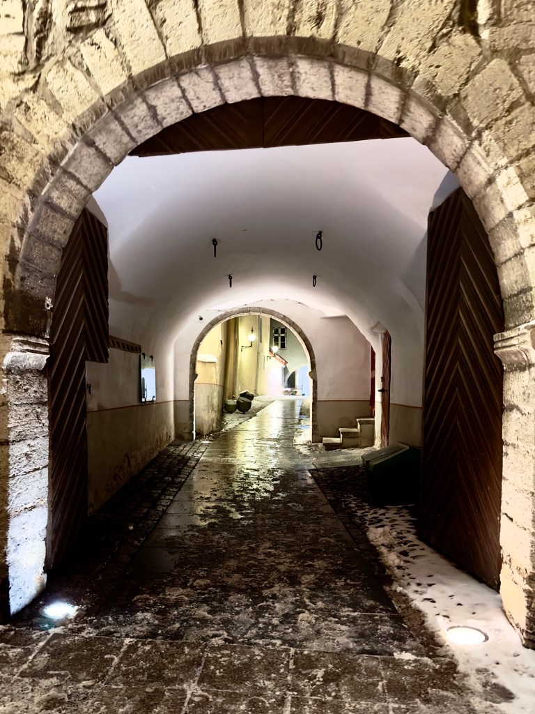 It was bitterly cold on our walk to the Rataskaevu restaurant but the old city was glowing with lighting of all kinds. The waitress took great pains to impress us with the quality of the meal and the room was cozy and filled with people. We were lucky to get an unreserved table because other people were turned away.