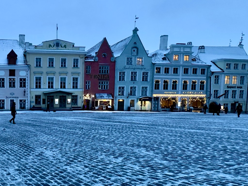 We were only a week in the Baltic states. But our eyes were opened up to the beauty of snow covered endless forests and the mixture of old traditions and the extreme modernity and very civilized current way of living. And all of the time I thought of the people of the Ukraine, who must have been living in exactly this way up until a year ago when Putin brutally attacked them. I felt as if I was actually traveling through Ukraine before the war and marveling at how civilized and beautiful it was. It brought that war home to me. Tallinn is only about three hours bus ride the Russian border six hours from St. Petersburg. Belarus is not far from Riga and Kviv is only a days drive away. It is contrast, between suffering Ukraine and bright and shining Estonia that will stay with me after I return. Menus, historical markers, the voices in the Riga market were all in English, Russian and Latvian. The tensions of the Baltic states will stay with me.