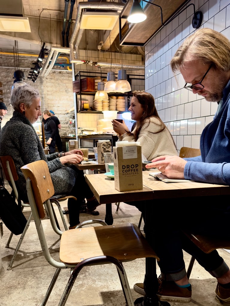 This bar with large screen TV’s loudly playing Depeche Mode in their heyday with a 2023 poster for a world tour on the wall was a garish neon tribute to Depeche Mode, which even Tood hadn’t heard of. And for this 85 year old who missed out on the rock era entirely, married to a German wife who only listened to Bach and Mozart, this Depeche Mode experience was a little overwhelming. We ordered large beers and tried to soak in the experience for Craig, buying him a Depeche Mode t-shirt, and then we walked back to our apartment over the snow packed cobblestones.