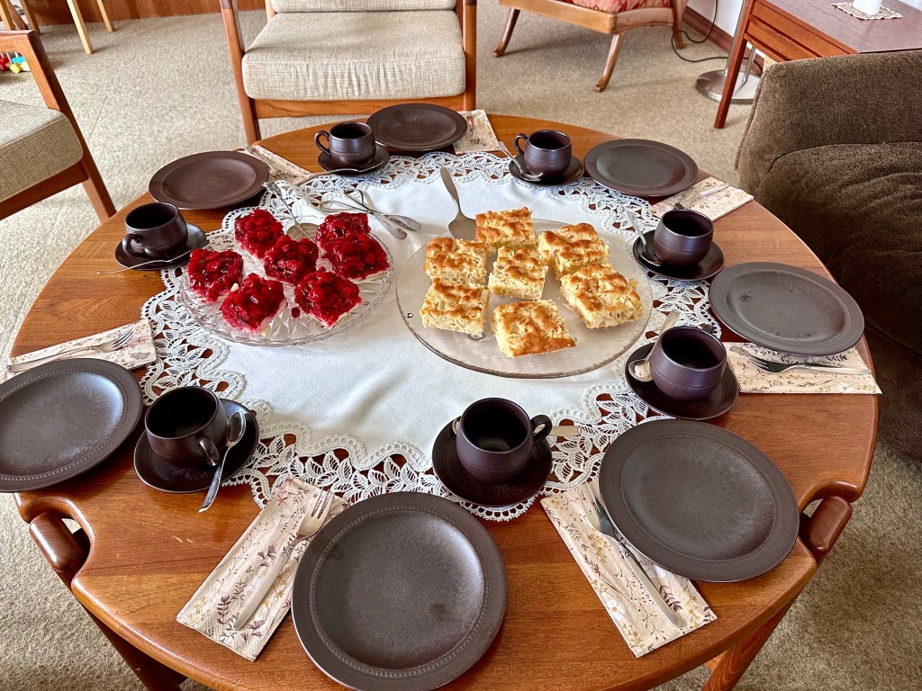 Then we visited the Winsen cemetery including the birch shoots where we placed Kathe’s ashes last year and then we came to Elke’s house for Apfelkuchen and raspberry cake and tea and coffee followed by a wide variety of liquors that lasted into the evening at 7 when Maria and Eva had to leave for Hamburg where Maria spent the night before returning to Berlin by train Sunday morning.