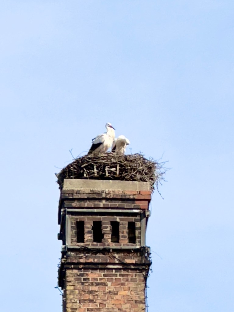 The Rathaus is a beautiful pink building. In the center of town on a high chimney where the town waits for the return of the storks in the spring. They had just returned for our visit.