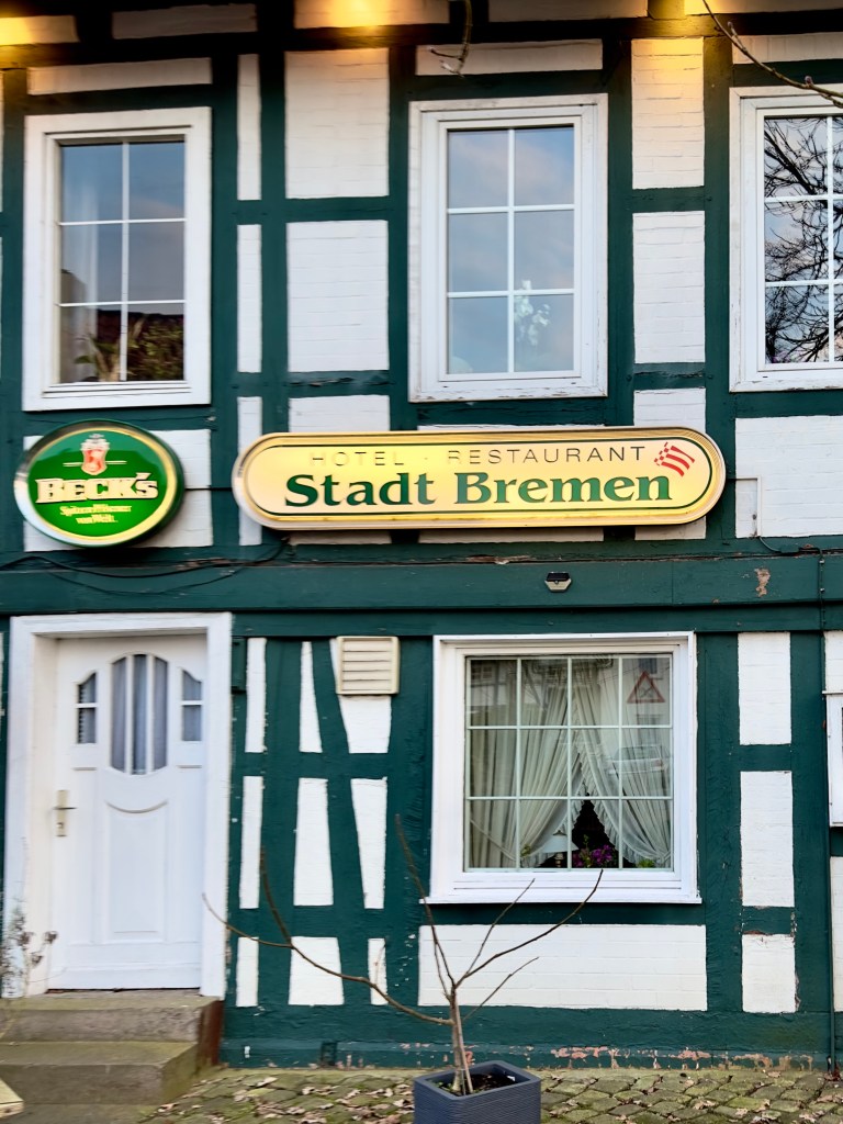 At the edge of town is the Aller river and just over the river is Stadt Bremen, the gasthaus where Kathe and I celebrated the wedding dinner with old friends 50 years late that she missed out by getting married in Ithaca, New York.