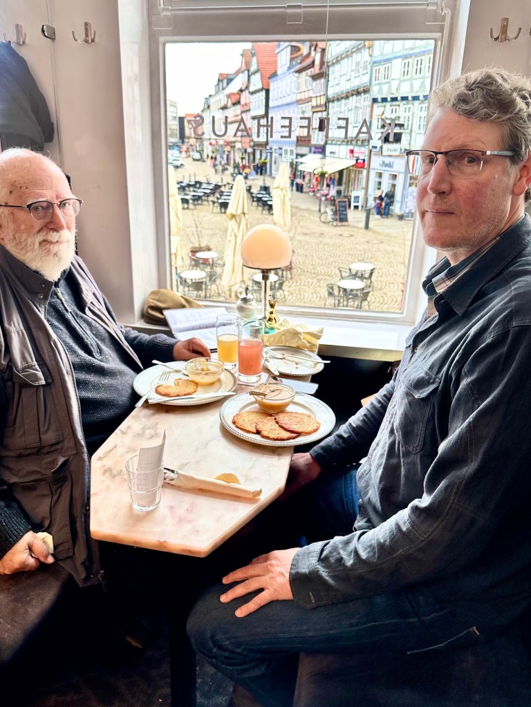 We stopped in Kaffee Kiess, an elegant cafe with wonderful cakes where we had potato pancakes and Apfelmuss (applesauce) just as Kathe did with her father and mother when she was a girl.