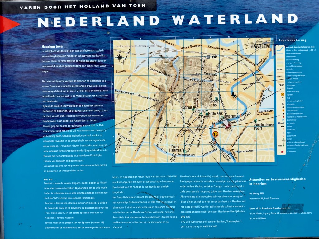 A river with drawbridges and canals run everywhere in Haarlem. Schiphol airport, very close by, one of the largest in Europe and built on reclaimeed land eleven meters below sea level gives them access to anywhere in the world only minutes away. We will fly from Schiphol next Wednesday.