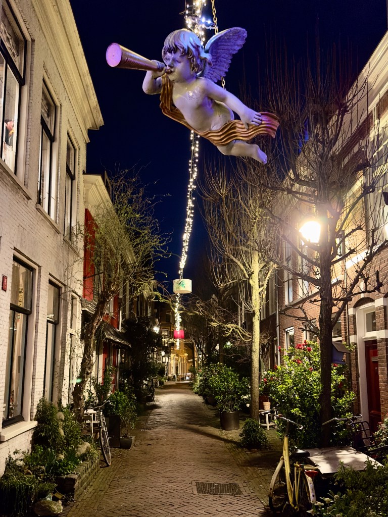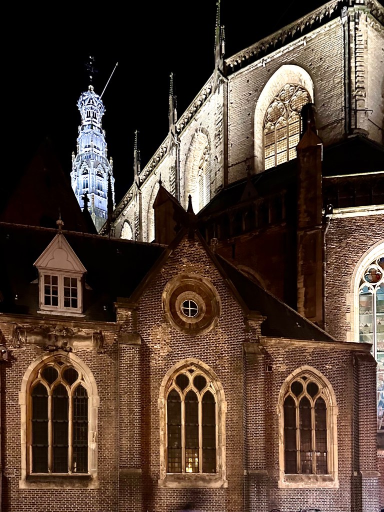 We went for an evening walk around the narrow resditential streets of Haarlem. In the dark of evening no curtains were drawn and household after household could be seen in their softly lit living rooms, often by the glow of burning candles. There is little privacy in the American sense and little concern with who might be passing by. Houses in the evening are cozy and full of life.