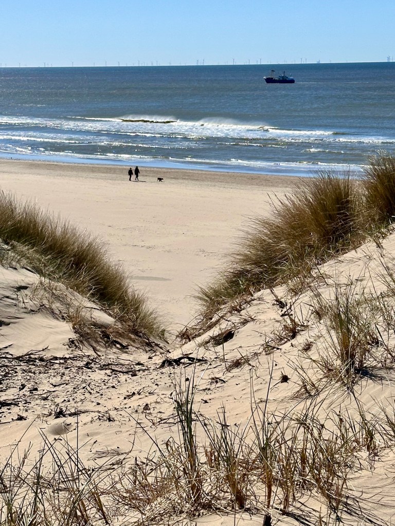 They are covered with low prickly purple bushes and thick grass which must have adapted to surviving on the wind blown sand of the dunes. Again it was a beutiful walk with time spent in a beach cafe where we had lunch. Everyone else had tomato basil soup but I celebrated being at the seaside with delicious fish and chips.