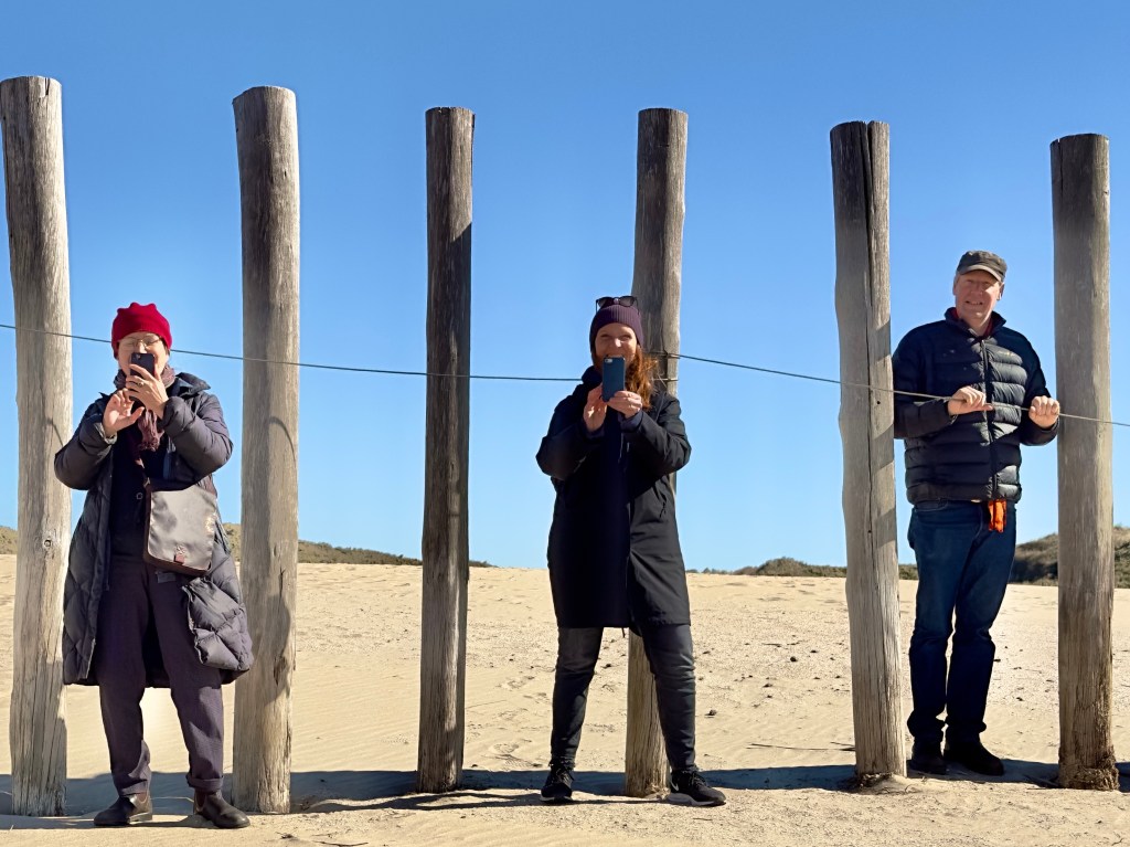 After walking yesterday in the park around the private great house near her home in Haarlem, Henny had one more place where she often walks to show us. She wanted us to take a walk through the dunes that border the seaside. These huge dunes have formed from sand blown up from the beach.