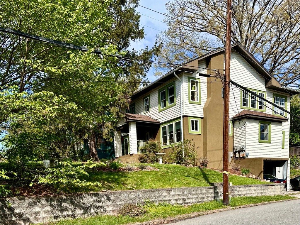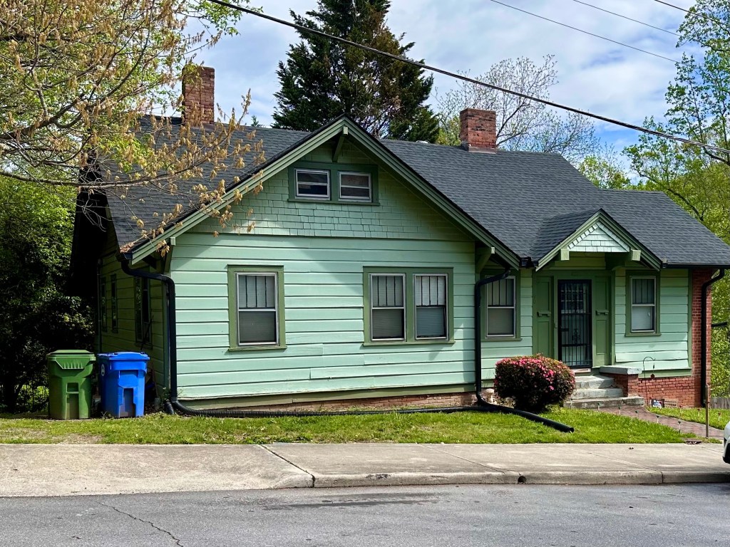 Susie spent the night in Asheville last night to avoid the long drive to Madison County and back. We drove to their apartment house in Asheville and left our cars and walked to the Owl Bakery. Along the way I took some photographs of small American houses, most of them similar except for a few very modern newcomers. This area of Asheville had been slipping twenty years ago and is now gentrifying with people buying old houses and fixing them up. House prices are rocketing.