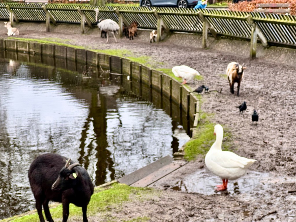 The Dutch seem to have parks everywhere. When Henny took us to Bergen, a very elegant town with boutique shops with beautiful clothing and objects in every one, there in the center of the town was a park bordered by a canal with all kinds of animals just over the fence: an emu and ducks and deer and swans. The dunes at the edge of the North Sea are protected as a national park. I mentioned the parking lots out of sight under the dunes. Between Henny’s house and the North Sea there are miles of parks with bicycle lanes.