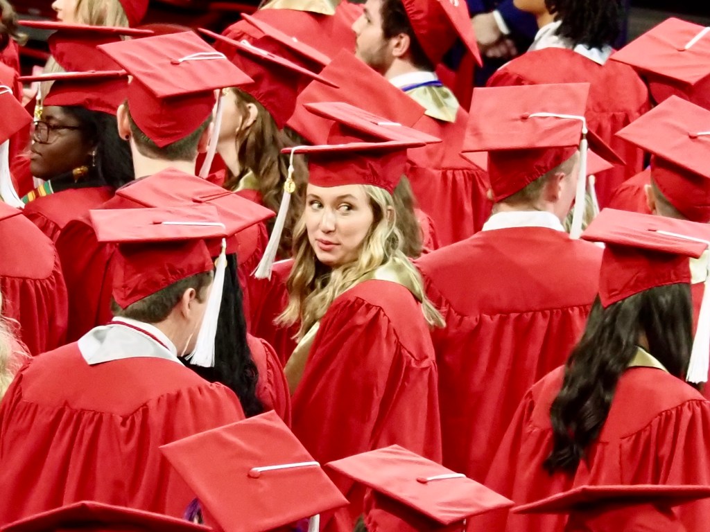 800 Biological Science majors filed into the huge hall at 9 a.m. and took their seats. Then there were a couple of speeches, actually worth listening to, one by a young woman who graduated from the department ten years ago and now leads a non profit health program in Peru.
