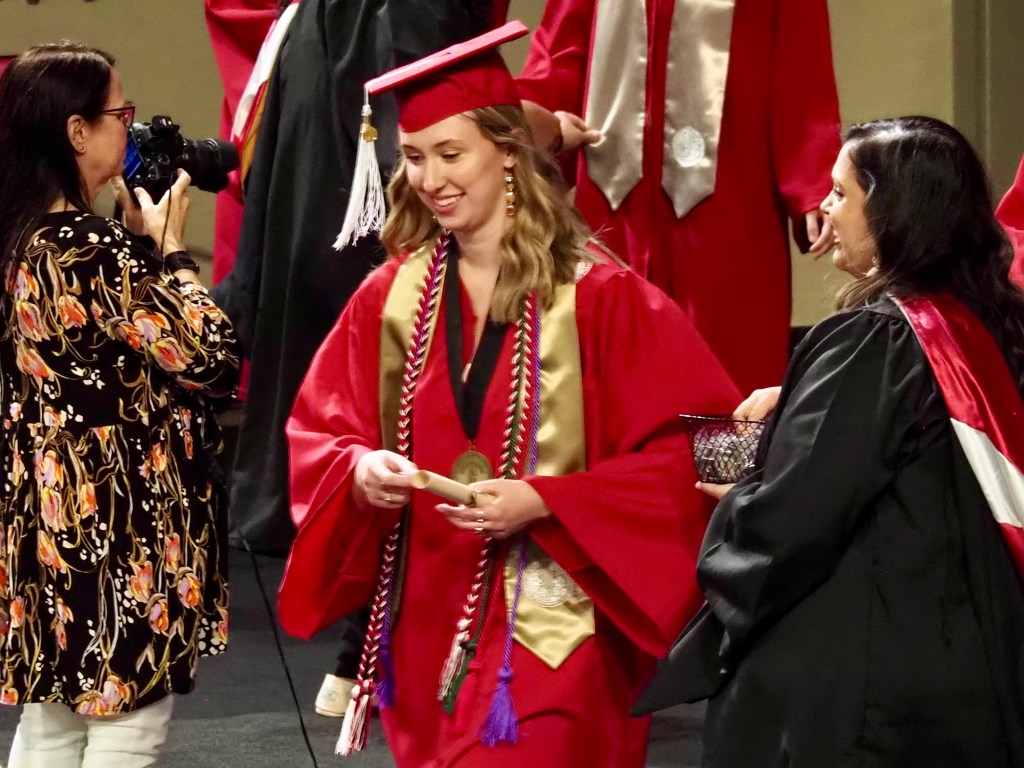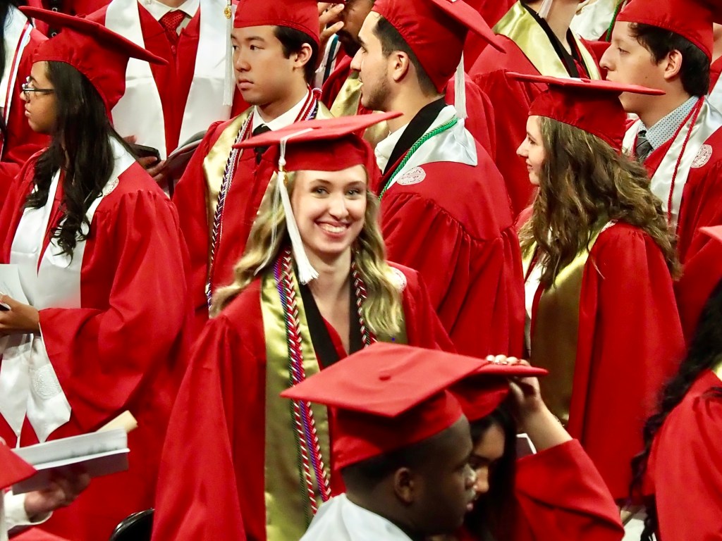 And then the 800 graduates lined up, row by row, and each had their name called out and received a diploma, a hug and a photograph. As with the rest of the audience we were only interested in our family graduate, and like everyone else we whooped and cheered when our graduate, Caroline, received her diploma with the only photographs we were interested in being of Caroline. After the ceremony everyone milled around outside and took family photographs. Then we all went to a very nice restaurant to eat, came back to the house for the afternoon and then had another catered celebration supper and the day was over.