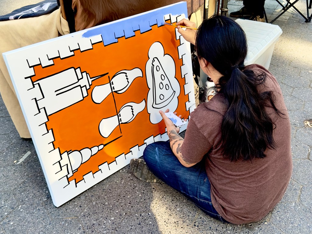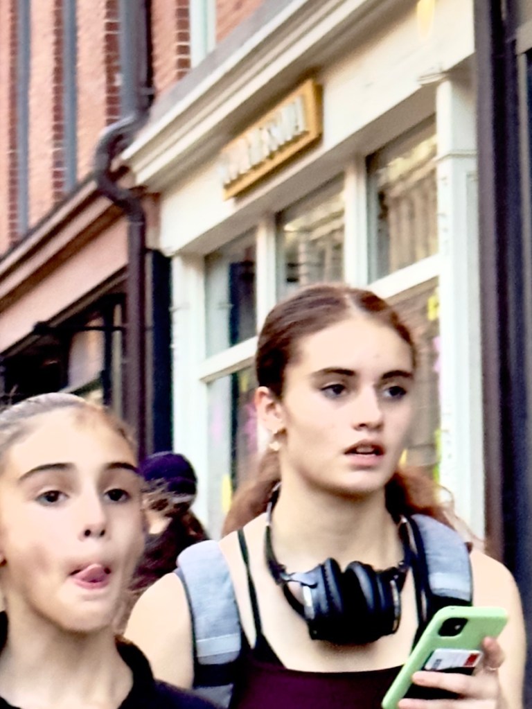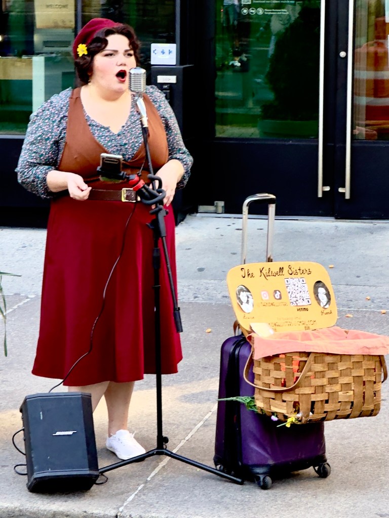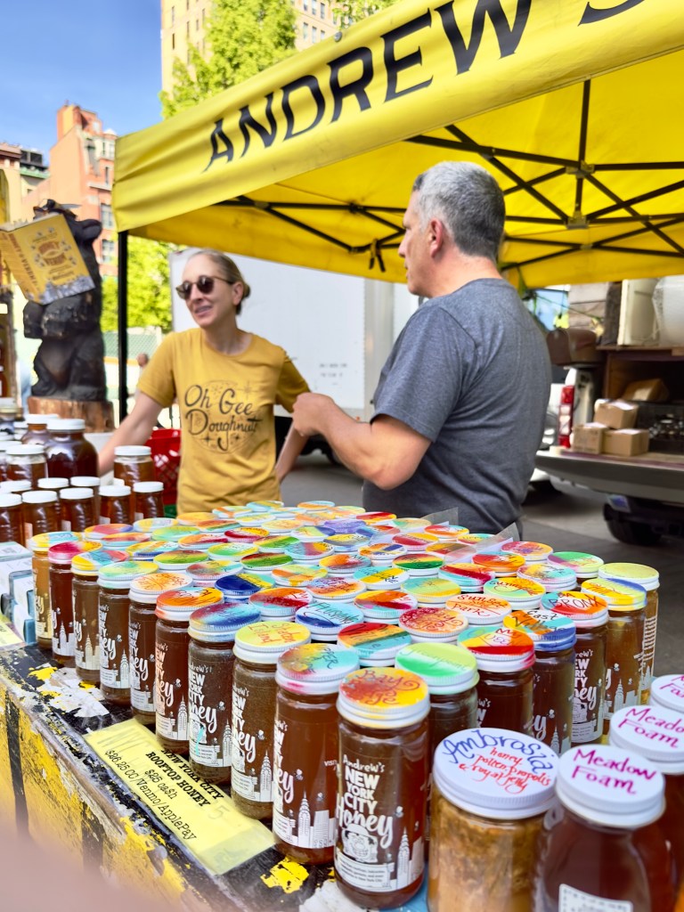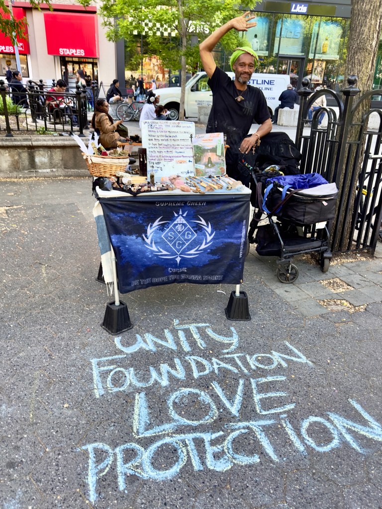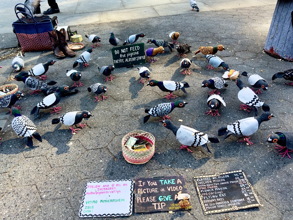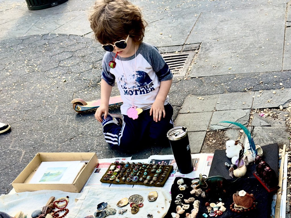But that was only half the day. By the time I got back to Penn Station I was worn out. Susie met me and we walked to Union Square. There were fold out yellow metal tables and chairs all around Union Square for people to sit at during the late afternoon and vendors of all kinds selling stuff around the park and a band. For two hours we sat there and watched people walking by.