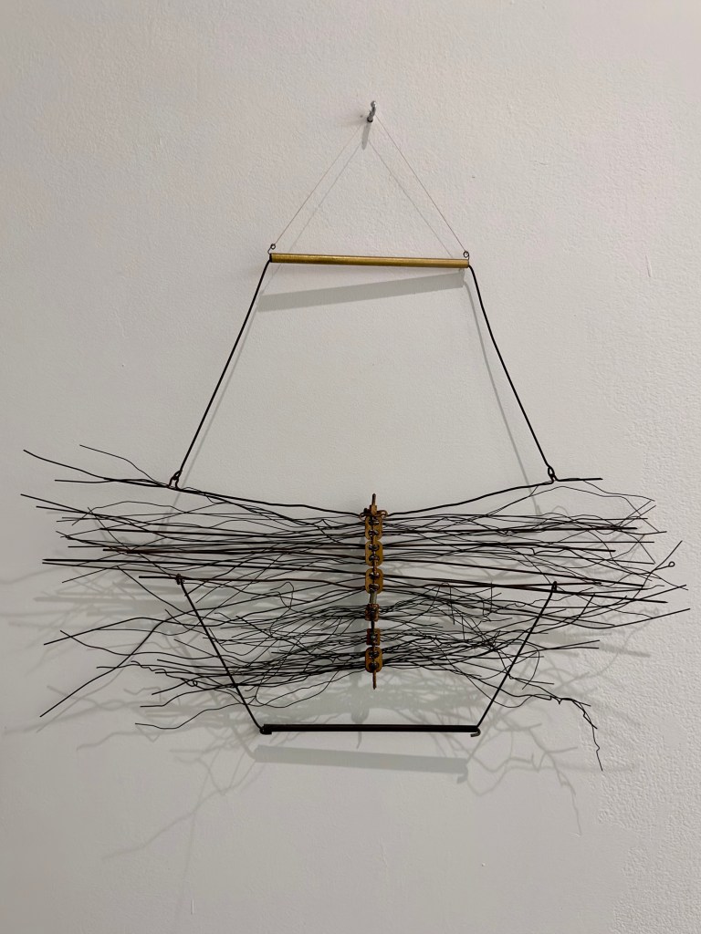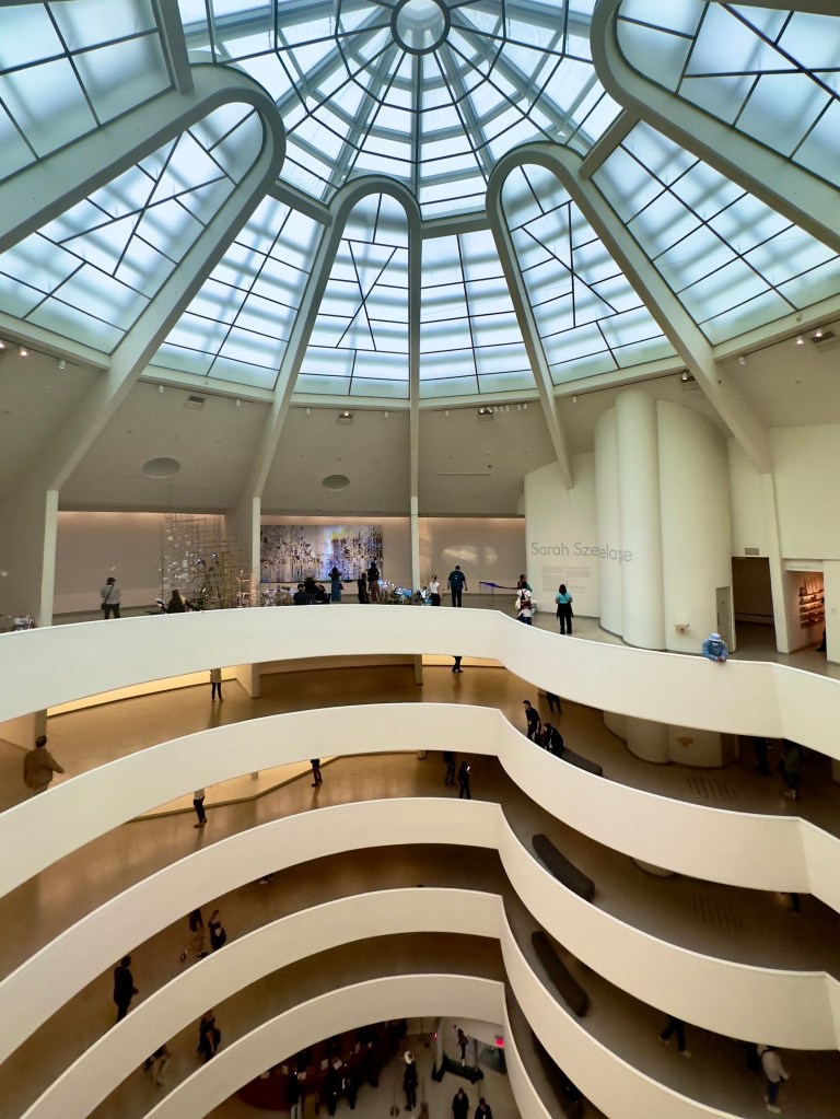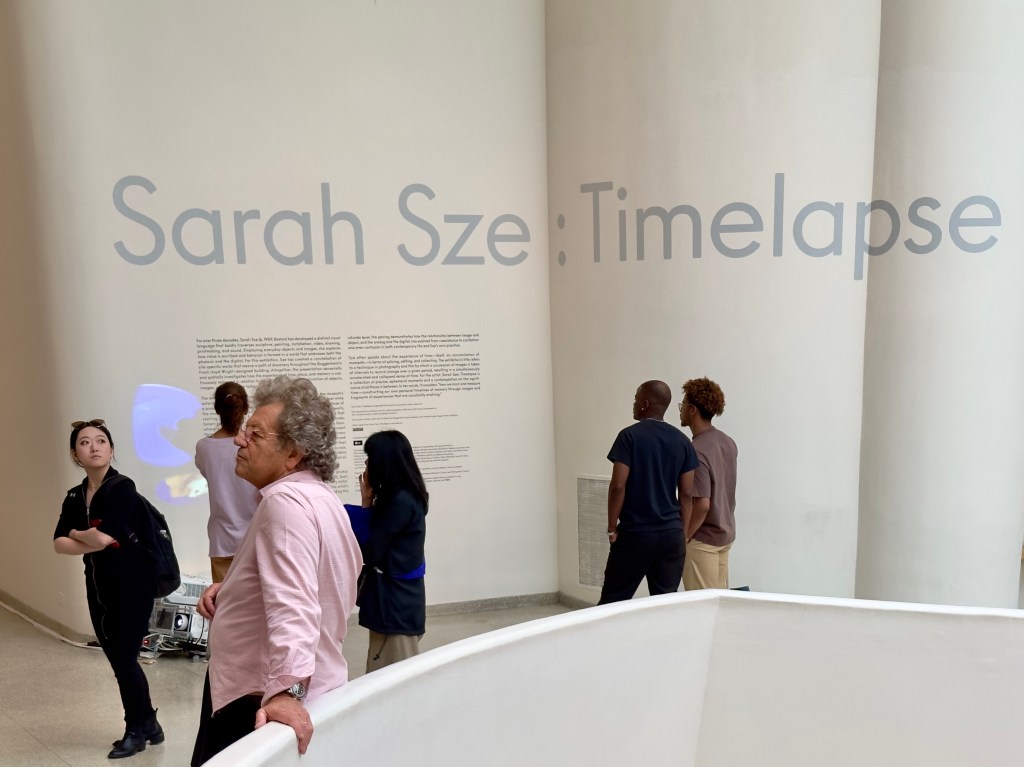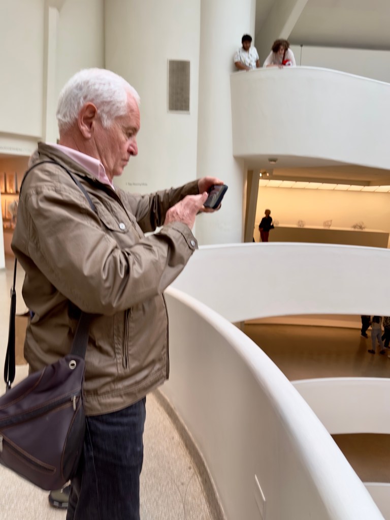 Nazi persecution by fleeing to Venezuela which became her home for the rest of her life. Two thirds of the Frank Lloyd Wright Guggenheim Museum was given over to displaying her talents. She made abstract shapes in many mediums. She painted, constructed simple beautiful wire arrangements, made geometric shapes with wood, did book designs, designed large buildings. We went to the museum to see another artist, Sarah Sze, who combined everyday objects and digital equipment and uses of light in an exhibit called Time Lapse, but it was Gego who struck me with intensity.