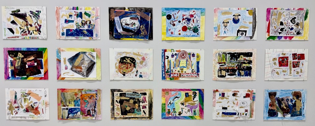 One exhibit at the Guggenheim in New York City that I didn’t mention was an exhibit of children’s drawings. The Guggenheim has major locations in New York City and Bilbao, Spain. An interesting exhibit was of art work by school children in New York City and Bilbao. Without comment I’ll show a little of the exhibit at the Guggenheim that I saw last week.