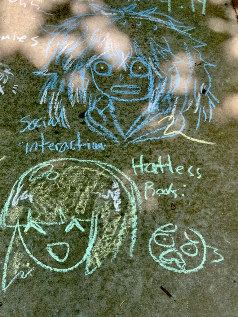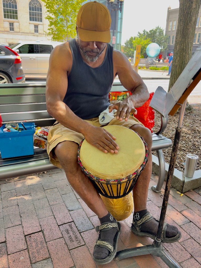 I went downtown on Sunday to see the second day of Juneteenth, the celebration of the last enslaved people freed at the end of the American civil war, a new national holiday, which I thought was being celebrated on the park in front of the courthouse in the center of town. There was a Christian group of young people drawing in chalk on the sidewalk, families with little children running through the spurting water in a childrens’ play area and people sitting on park benches. But there was no sign of the Juneteenth Celebration with bands, and performers and tents of black restaurants and sellers of African merchandise. I thought that I had misread the article in the paper announcing the celebration and that it must be in another part of town.