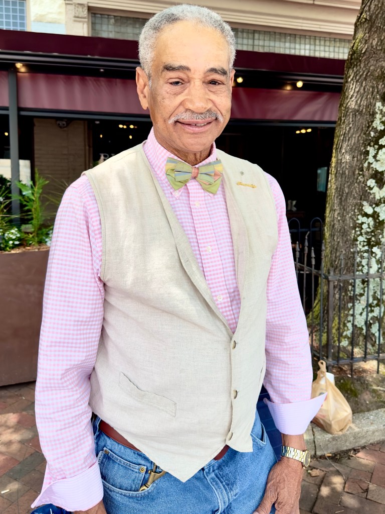 There was a man selling bow ties from a portable table covered with bow ties. His bow tie was very attractive. I asked if I could take his photograph and he let me and smiled, I don’t know if he smiled because I seemed harmless or because he hoped to make a sale or because he enjoyed having someone to talk with.