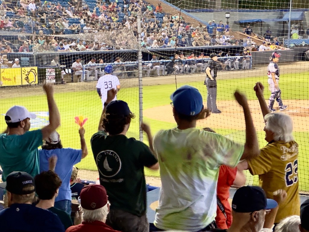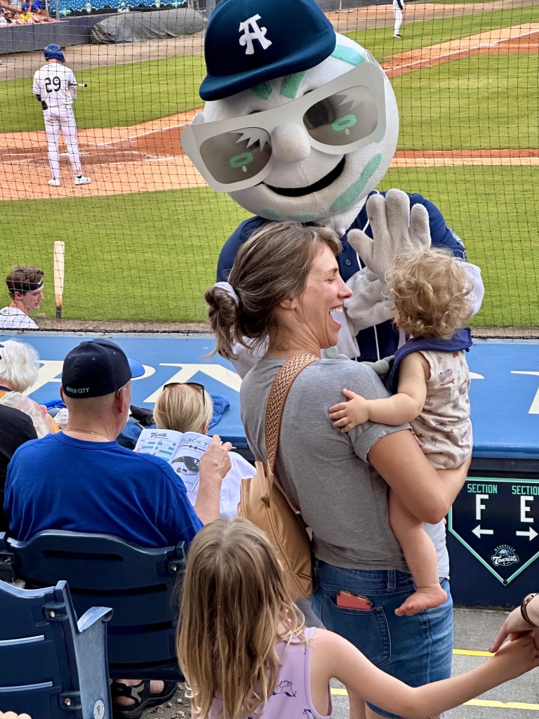 When Asheville would hit a home run out to the park, which they did several times, the few people who were watching would stand up and cheer and wave their arms and do a little dance. In the breaks between innings there was entertainment for the children. There was race between nine year olds bouncing on rubber ducks and another race between two little electric cars, one of which a little girl could only drive in circles while the little boy rode straight to victory.