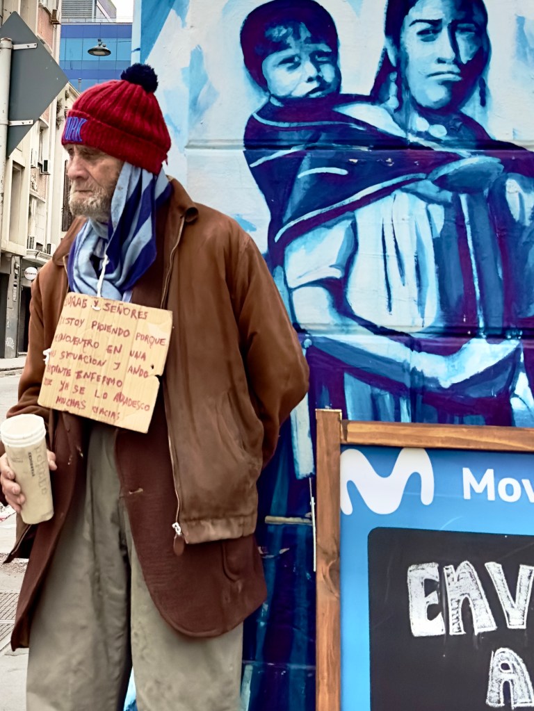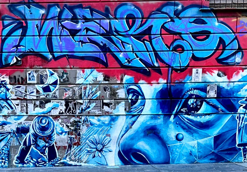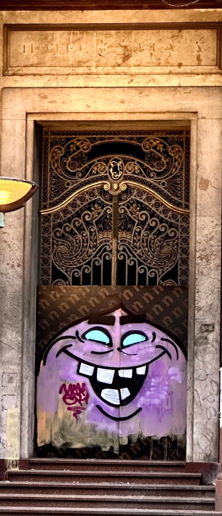 In my wandering Wednesday down by the harbor as I tried to find the bus station to the Cargo Terminal of the Montevideo, Airport I passed graffiti, street art, on almost every bare wall. Graffiti is everywhere in Montevideo, even on my street, Sarandí. There is street art everywhere and dogs being taken on walks and dog poop everywhere. There are no scolding signs, no one seems to care, I don’t care. Asheville has its graffiti, but not as much, and no dog poop. Montevideo seems like a little freer and less uptight place.