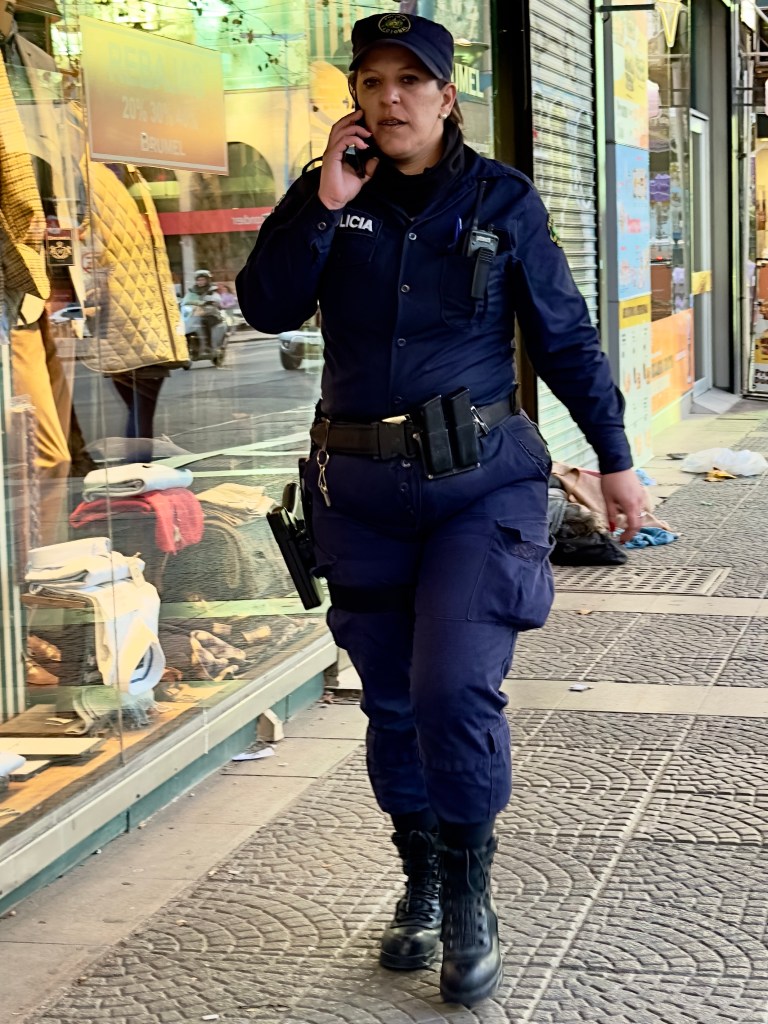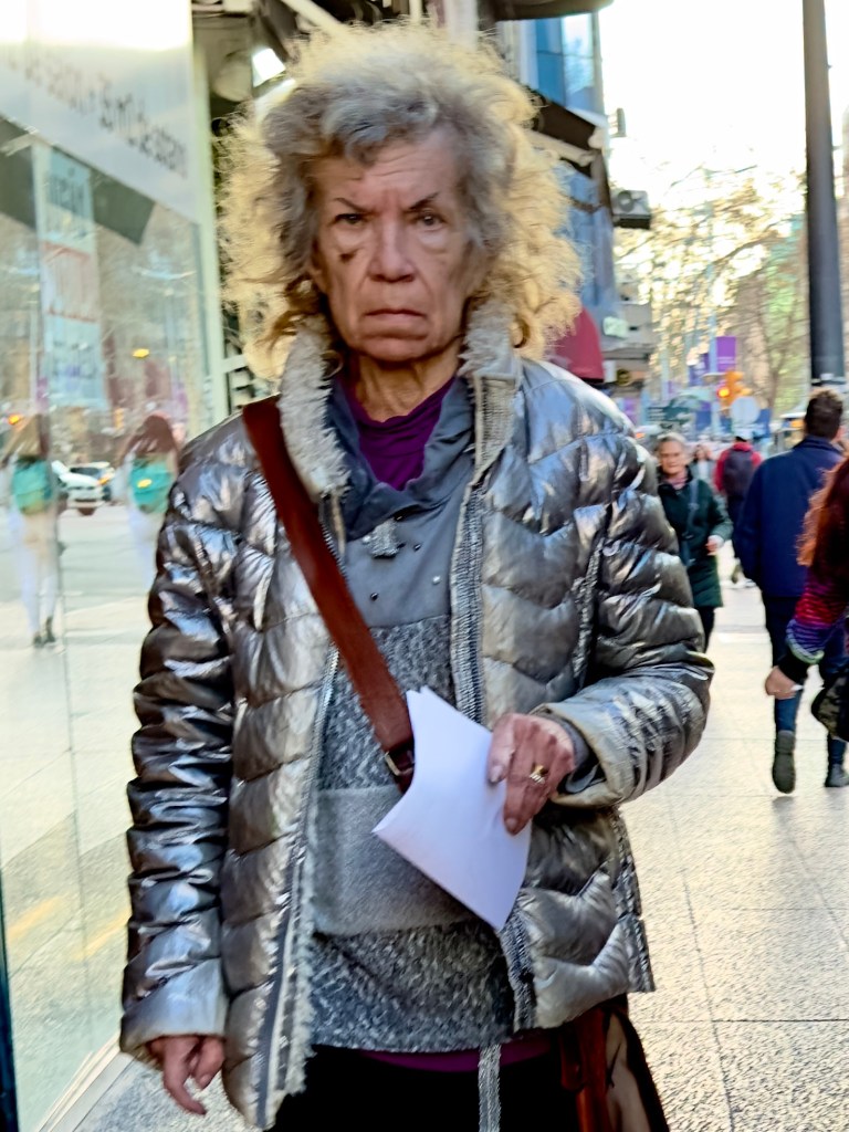 Sunday my destination was the crowded street market that takes place every Sunday in the Cordon section of Montevideo off of the Avenue 18 de Julio. I never found it. The next day, Monday, I decided to visit the Historia del Arte museum, also on Avenue 18 de Julio. I walked and walked and finally found it. It was closed. So these photographs are of some of the people I found who were out walking or shopping as I wandered back and forth on the broad Avenue 18 de Julio on two successive sunny but chilly winter evenings.