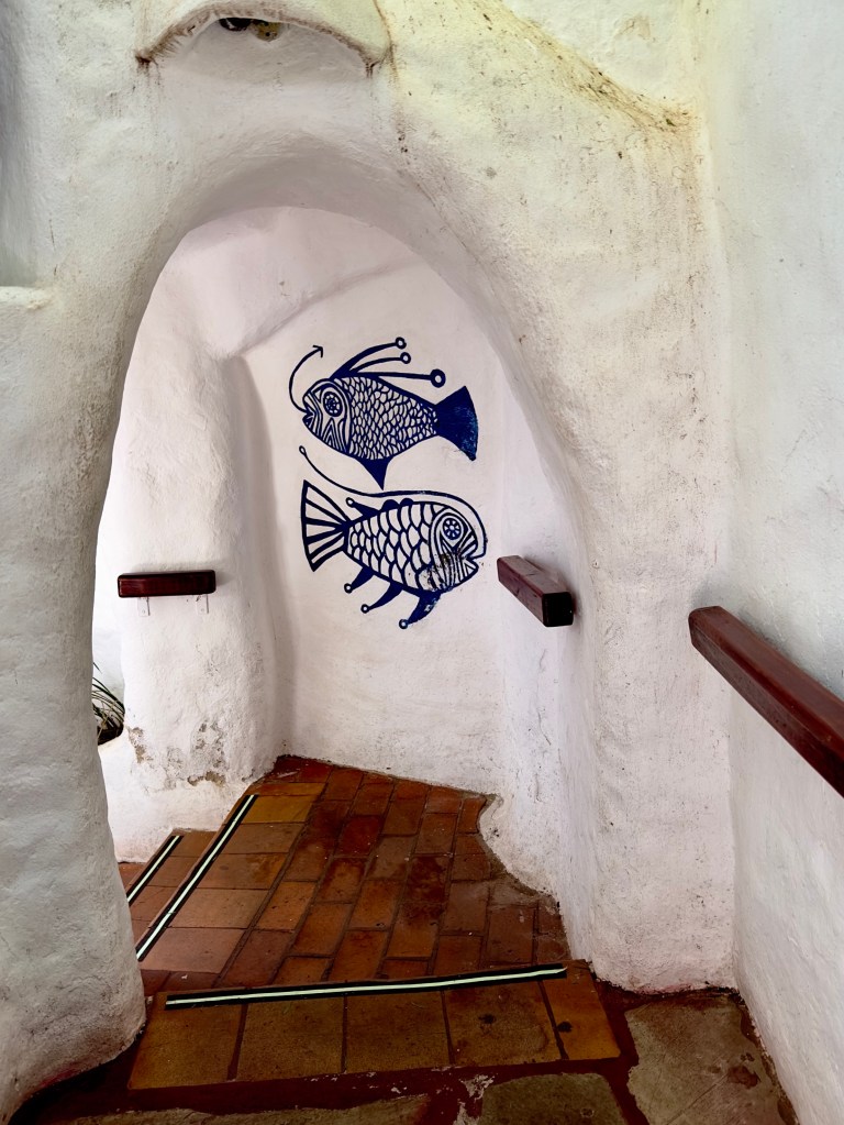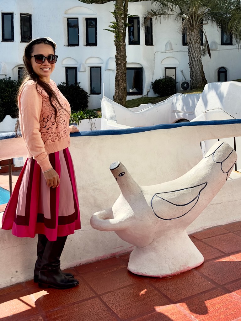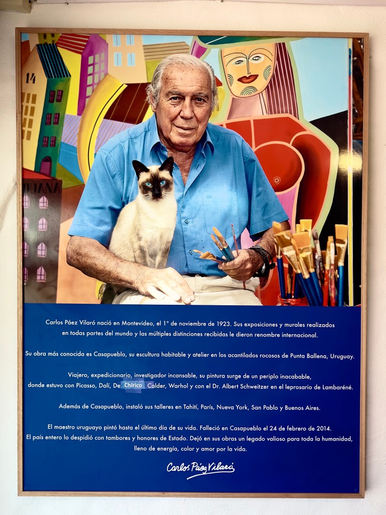 And then we went on to the seaside private home and museum of Uguguay’s most famous artist, Carlos Paez Vilaro, who was pals with Picasso, De Chico, Dali, Warhol and Albert Schweitzer according to information at his house. He built his house himself modeled on Gaudi’s buildings in Barcelona. He is no longer alive, but someone has kept his memory very much alive with this house/museum with a $15 entry fee and copies of his work for sale in every other room. But slick as this presentation is, you judge his art for yourself, what he has created is colorful and fascinating and well worth visiting.