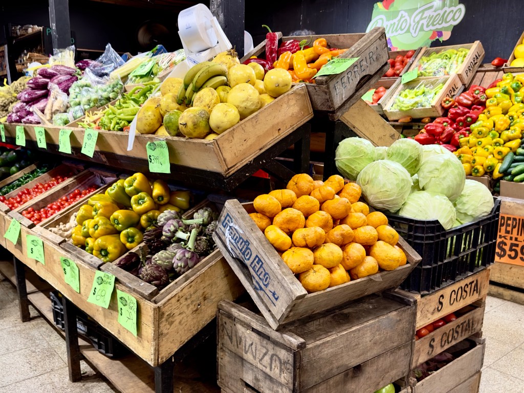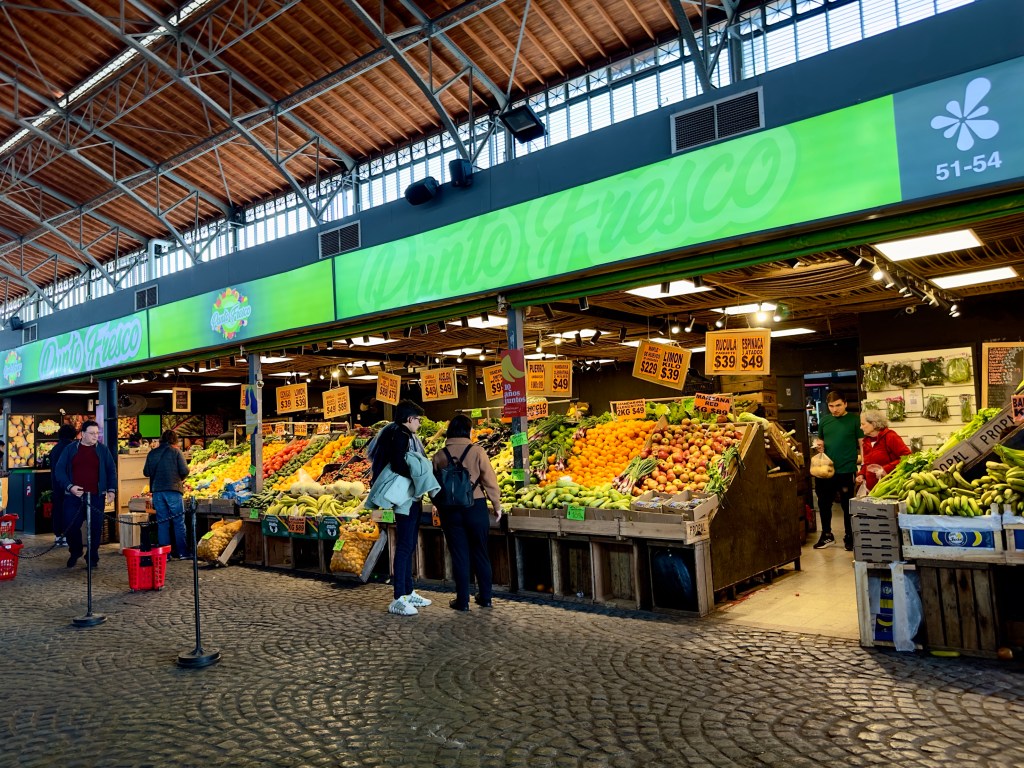 The second place we visited where we had a long stop was an indoor market, Mercado Agricola de Montevideo, which had all kinds of modern shops, many restauarants and two very colorful vegetable and fruit stands.