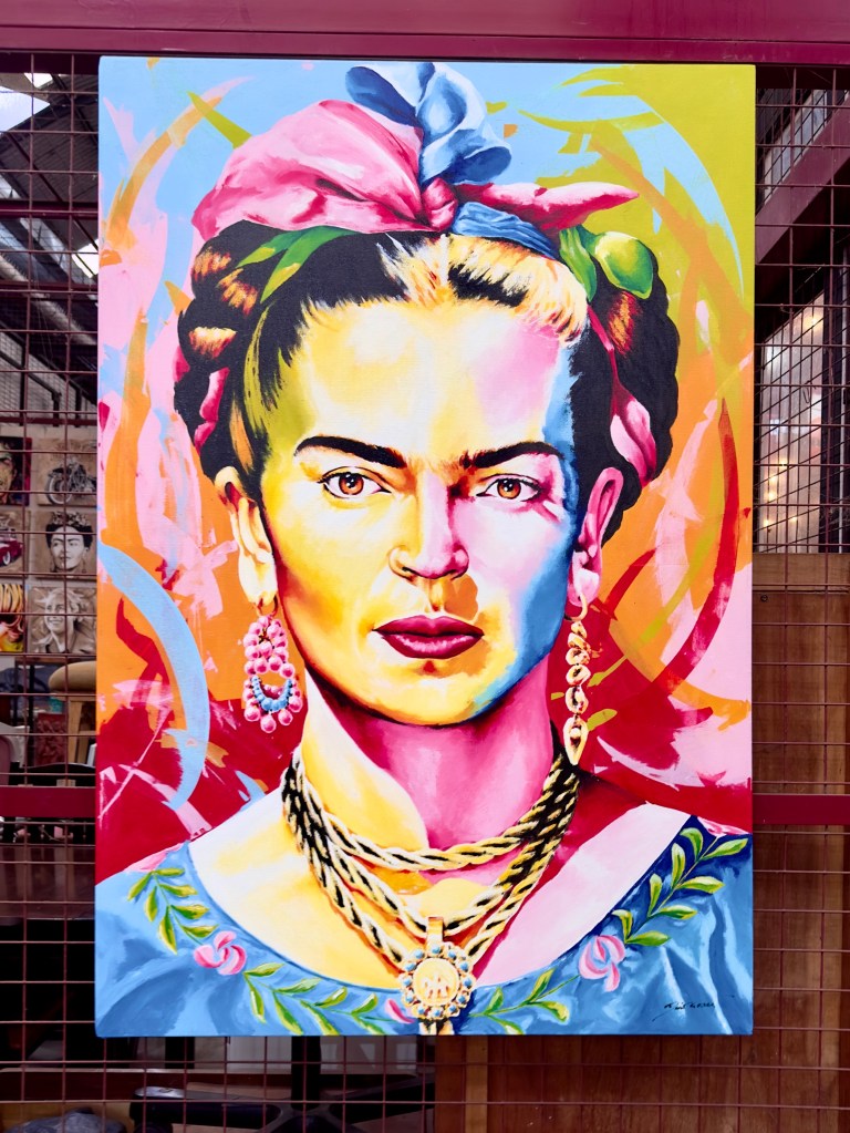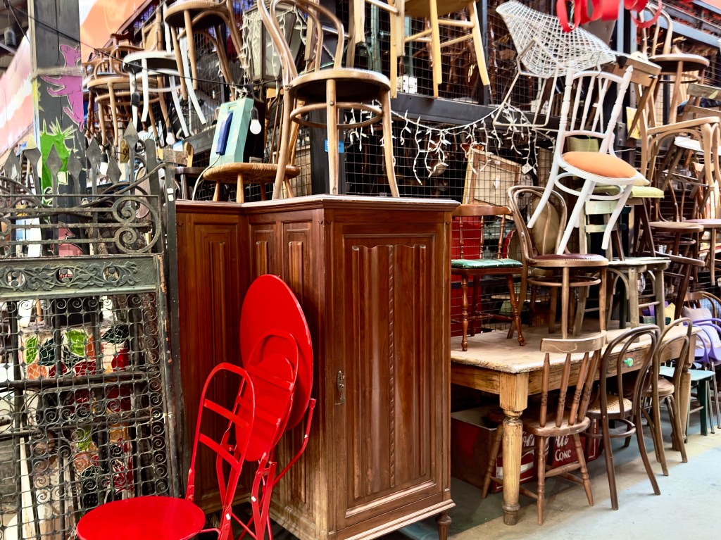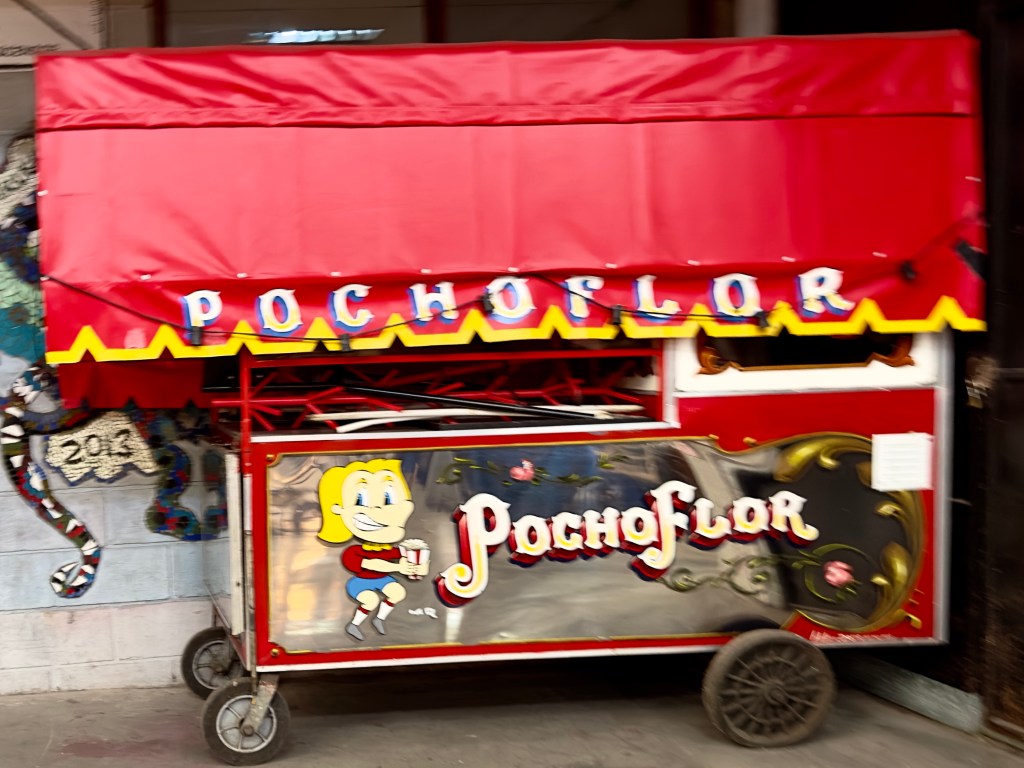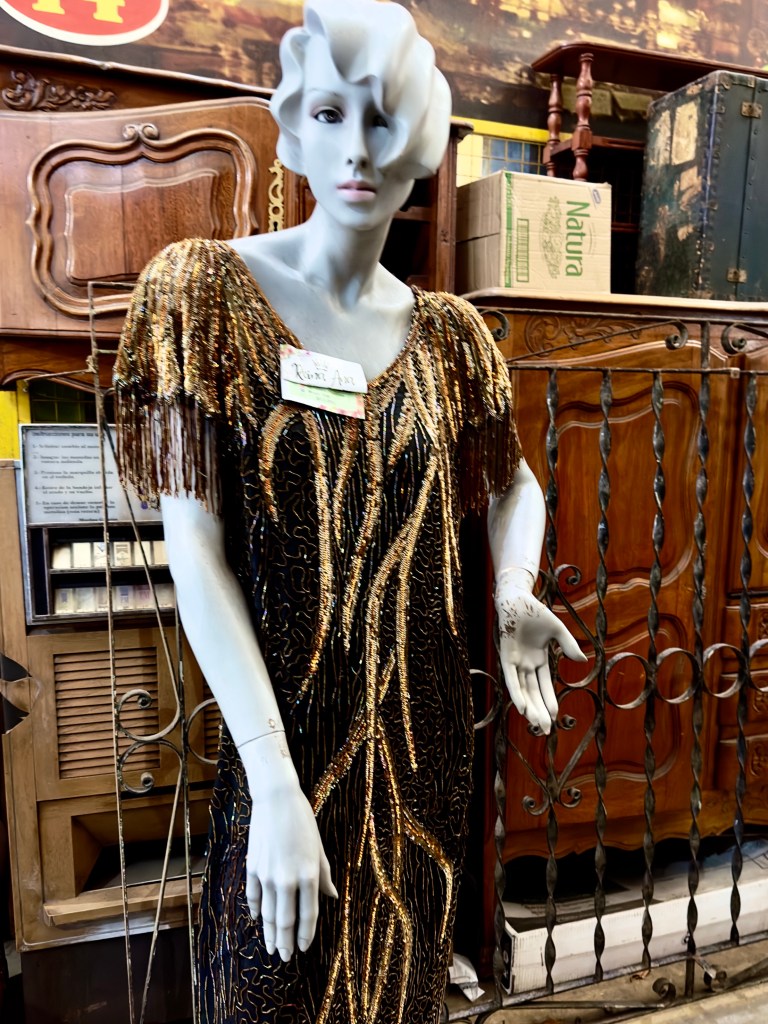 The Mercado de las PULGAS antique furniture market is in a huge indoor building which was lucky since the rain was now pouring down. Aisles stretched far in the distance in every direction. I’ll show you a few photographs to give you a sense of what it is like. After visiting the flea market for an hour I walked back to my apartment in a little drizzle, taking photographs of street art and brightly colored restauarants along the way. I’ll show those photographs later.