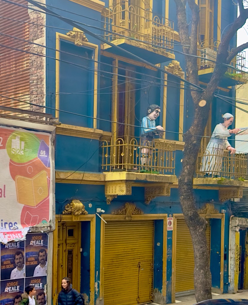 In the last year I’ve taken the Big Bus, Hop Off, Hop On tour of San Francisco (twice) and the Big Bus tour of New Orleans (twice). I like riding instead of walking and from the open air upper level can take photographs, first from the left side and then from the right side. This is, again, an old man’s way of seeing a city. I was planning to do the same thing in Montevideo, but the Big Bus was cancelled during the pandemic and never started up again, and to do the same thing in Buenos Aires. But in Buenos Aires I only circled the city once. The reason I only toured once was that unlike the houses called the painted ladies in San Francisco, or the variety of New Orleans, the only things to photograph in Buenos Aires were ornate classical buildings, very modern shiny glass buildings, or the most colorful section of the city, the houses of the poor along with a number of very important looking men gazing out from pedestals, either giant heads or on horseback. Photographing these things was enough for me. Most people in Buenos Aires seem to live in apartment buildings.