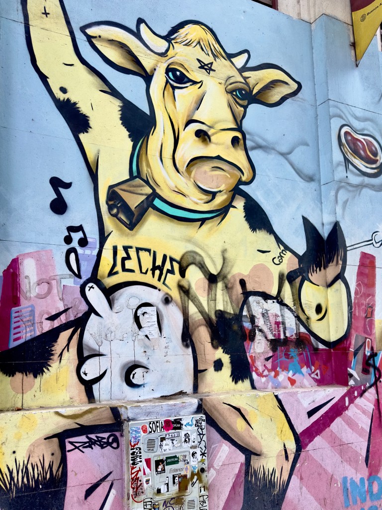 Graffiti, street art, is everywhere in Buenos Aires, on the pull down metal coverings of store windows in the elegant parts of town to the everywhere, and more and more political where the ordinary people life. I’ve already included a lot of graffiti, but here is some more.