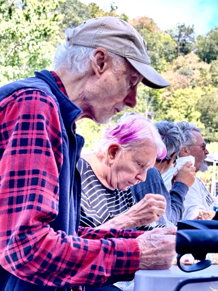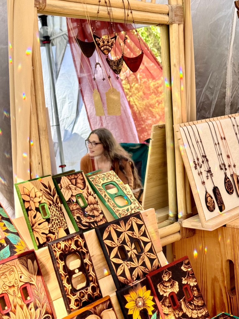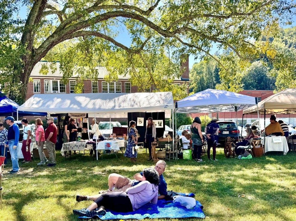 Saturday afternoon September 21, I went with Susie to Art on Blannahassett Island in the French Broad River at Marshall. It was a sunny, cool, fall afternoon. On the grass beside the old high school building that is now converted into artist’s studios were 30 or 40 white tents where local artists were selling their artwork. There was a young woman singing from a stage at one end of the park and people sitting on blankets on the grass listening. The Sweet Monkey had a food booth and a group of Latino women sold Nicaraguan food. There was a children’s tent where children were making robots of their own design out of junk materials. It was a wonderful afternoon.