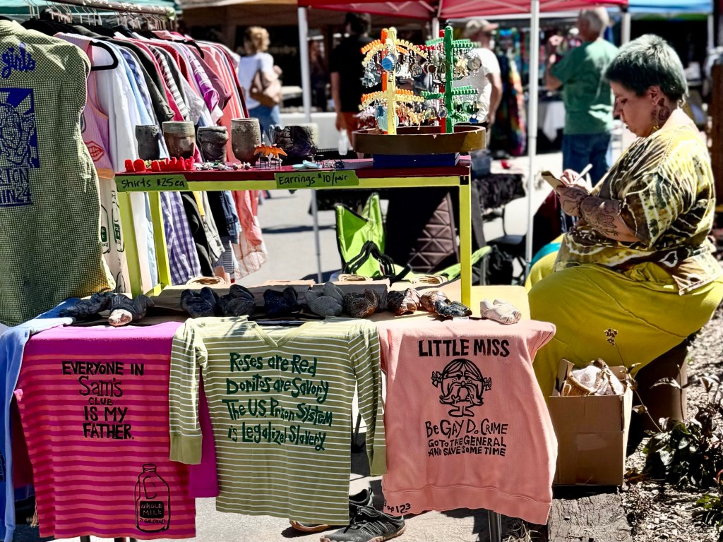 Once a month someone organizes an outdoor craft market in the River Arts District of Asheville at the edge of the French Broad River. Adjacent to the white roofed booths of the artists is Marquee, formerly a huge warehouse with is now filled with upscale booths of artists whose art is sold through Marquee. Today I will share photographs of the outdoor market and tomorrow share photographs of Marquee.