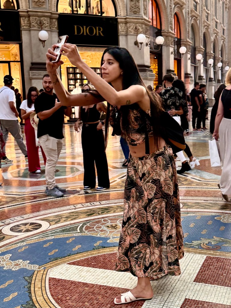 The Duomo was simply an elegant prop and background for selfies or photographs by friends, often from knee level, in which the person being photographed is more important than the Duomo itself.