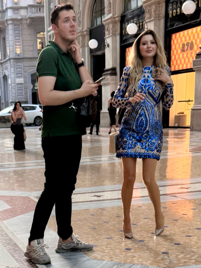 But mainly what I saw of Milan was tourists as decked in almost outrageous ways as the people I had seen at the Gay Pride Festival in Asheville the day before. In the plaza in front of the Duomo it was the the Duomo with it’s many spires was a photo prop for the reason that people seemed to be there.