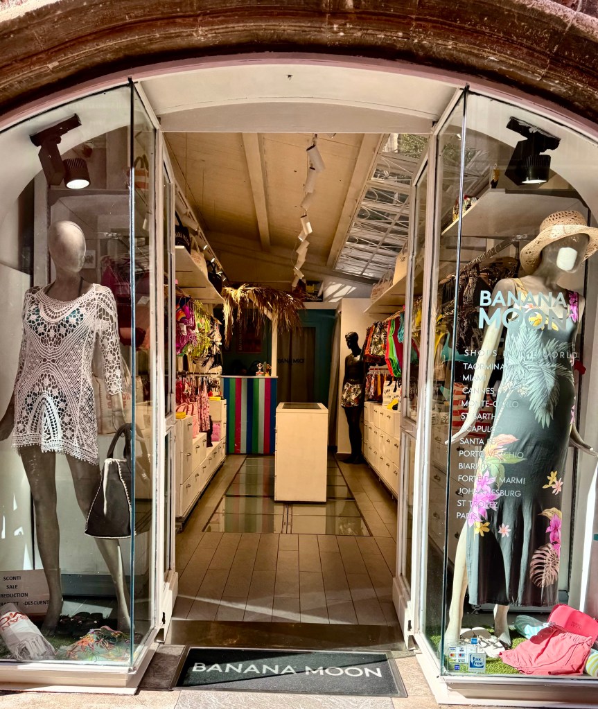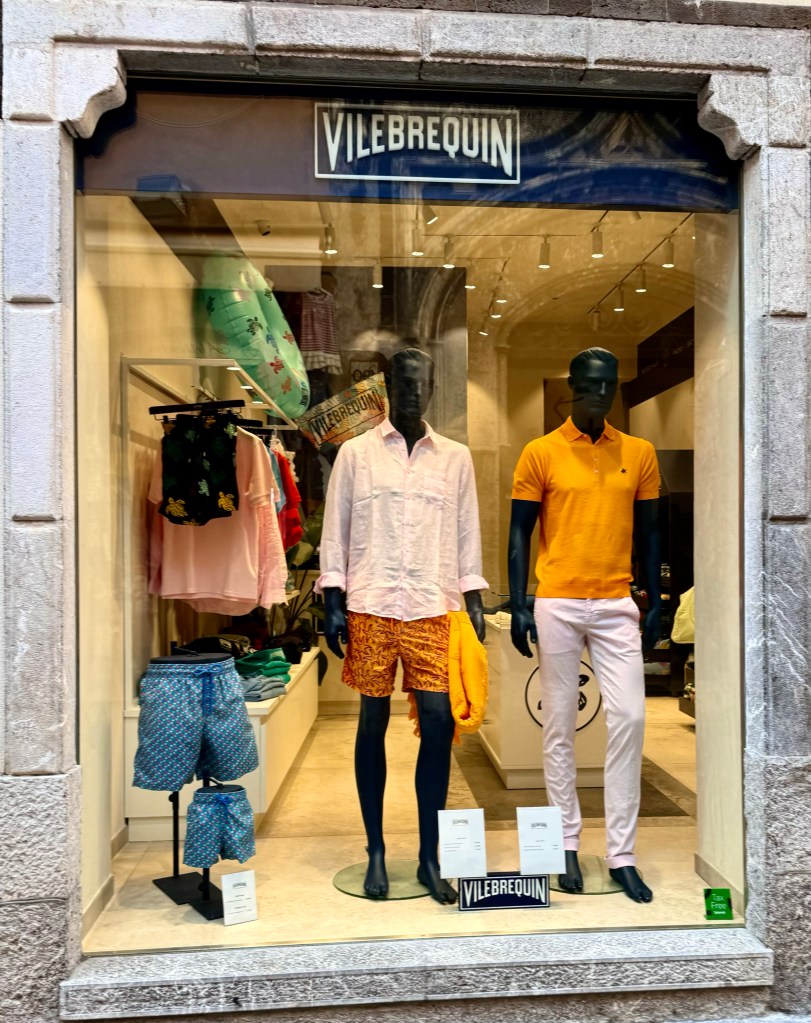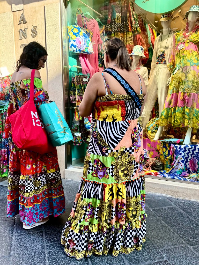Walking down Corso Umberto, a level pedestrian only main shopping street I see the same stores—Dior, Giorgio Armani, Louis Vuitton—that I saw in Milan, only a little smaller. And I see the same people, dressed up fit to kill, but in the bright pastel colors of vacation outfits since vacation is why they are here. In fact, I could be in Colonia, Uruguay or some of the streets in Essouria, Morocco or the Champs-Elysees, Paris or 5th Avenue, New York. I could go around the corner and be in any of these places.