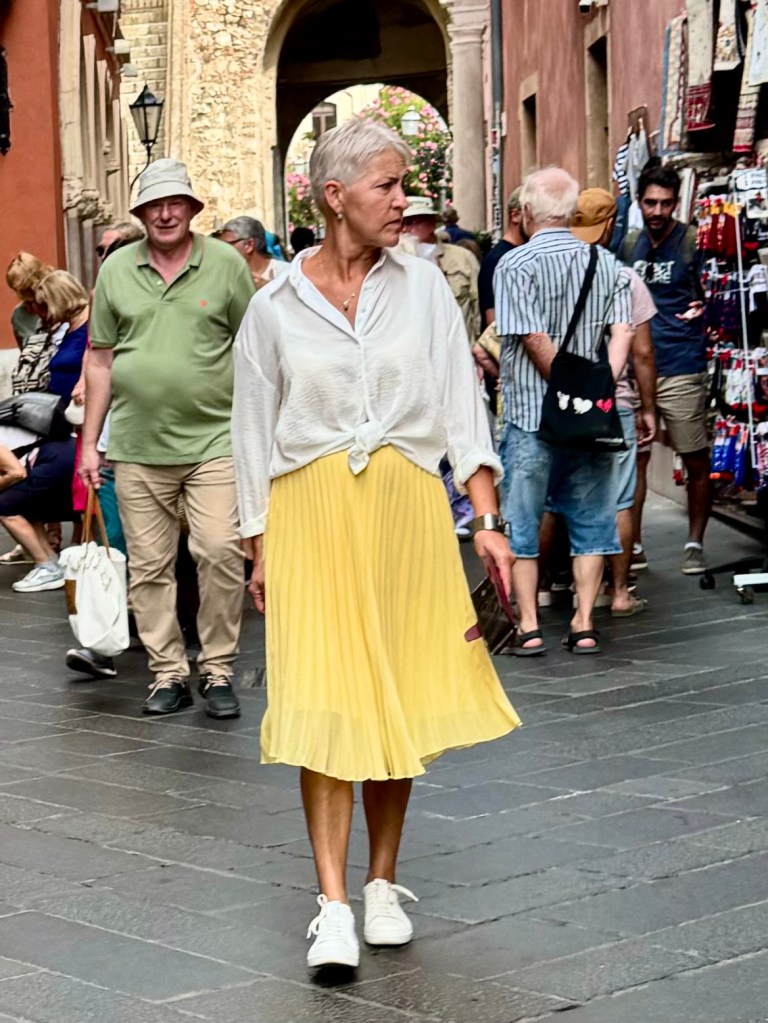 But this certainly isn’t what I dreamed Sicily would be. There are people in wedding outfits here, as there were in Milan, but these people are here to get married in style. I will describe the wedding procession I saw today, tomorrow. But for today, this is what Taormina, Umberto Corso, looks like.