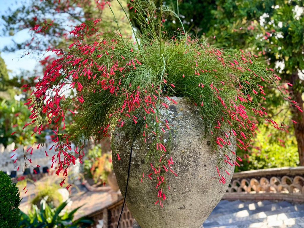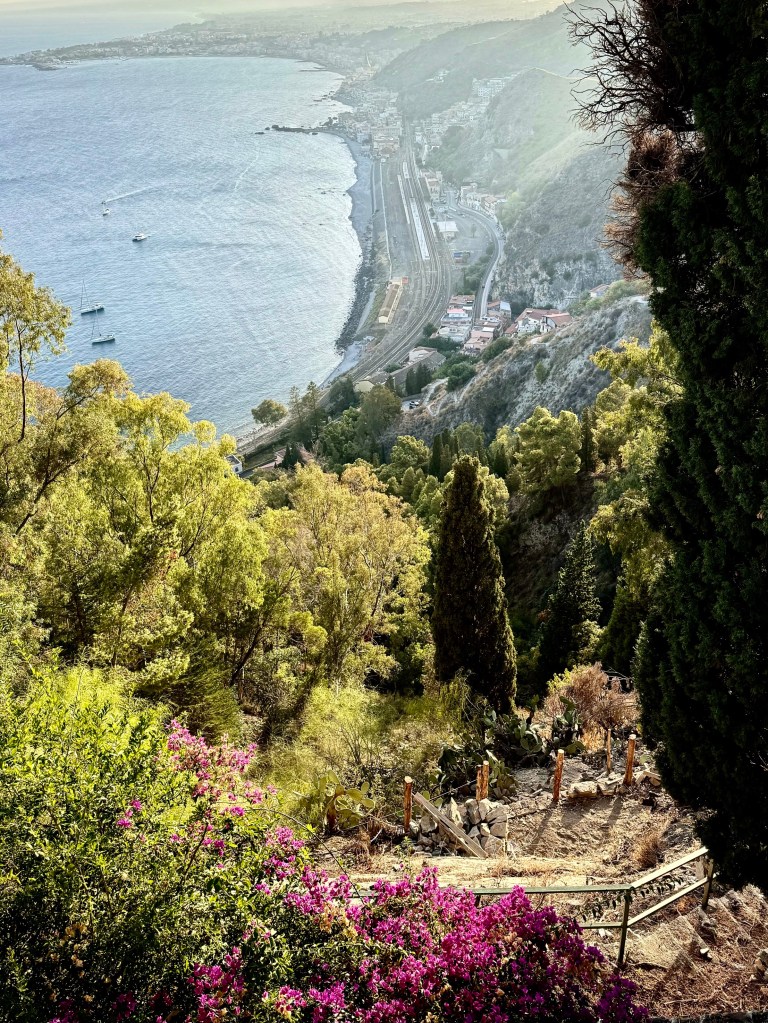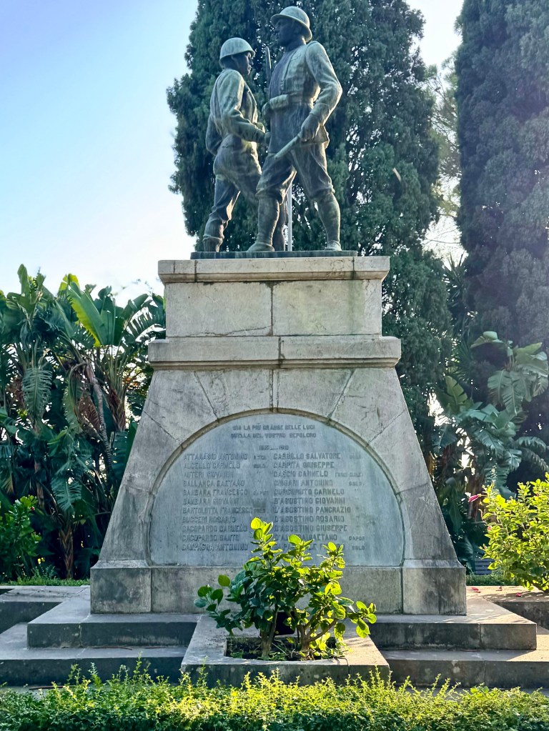 My last day in Taormina I visited the public gardens of Taormina. This large public garden along the cliffside of Taormina is a complete contrast to the crowded glitter of Umberto Corsa. The spacious garden was laid out by and English woman, Lady Florence Trevelyan, who left England for Sicily after having had an affair with the heir to the throne, Edward VII. She settled in and married the mayor of Taormina.