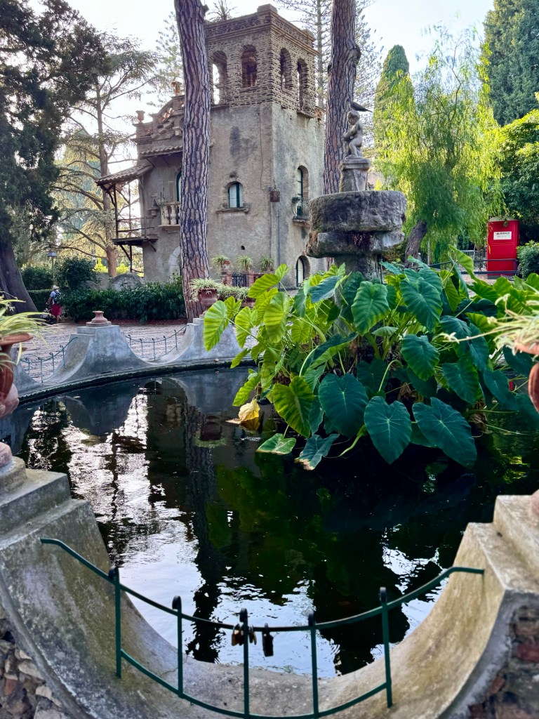 The garden with its long avenues of trees has ornamental structures called Victorian follies. There are a great variety of trees, flowers and cacti in the large garden and a feeling of quiet and peacefulness with people strolling through as they let go of the pomp of Umberto Corso.