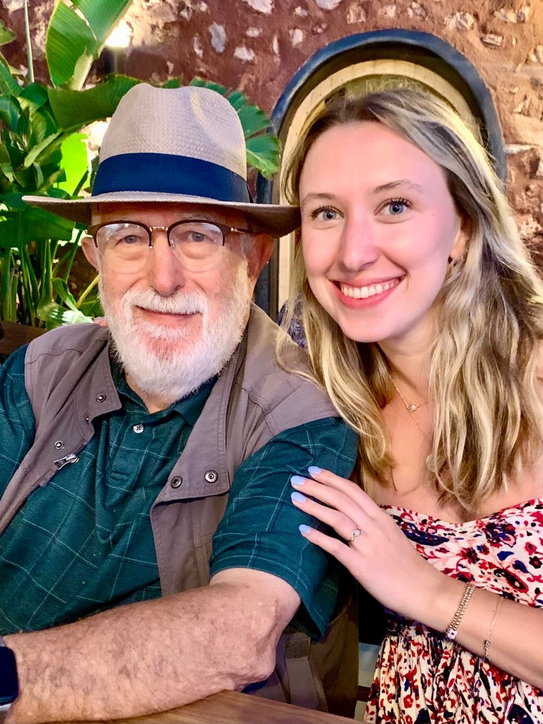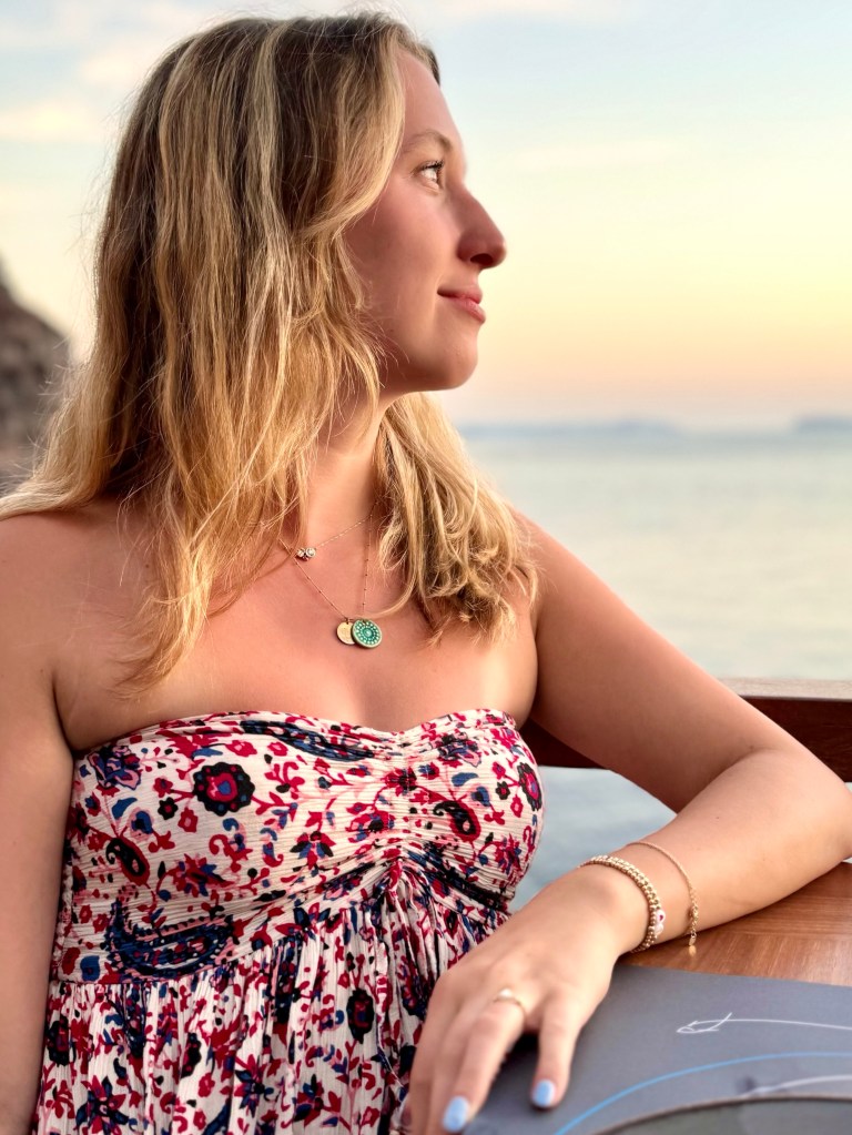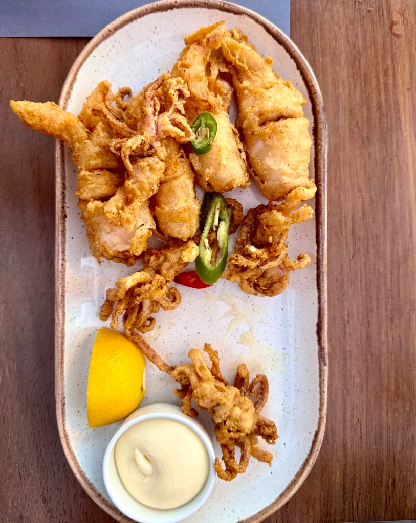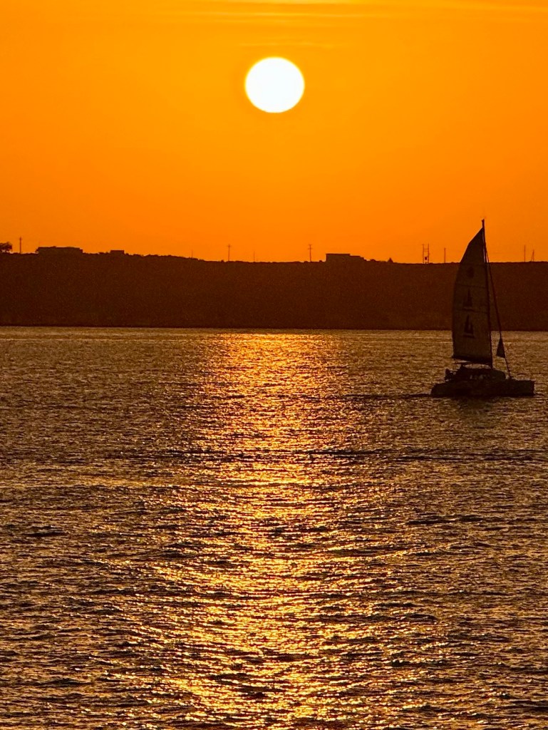 And then in the late afternoon they returned and we all went back down to the edge of the sea, this time by Uber, to a marvelous restaurant, Ammoudi, at the edge of the water where we had an outdoor table and watched the sunset and boats below us and had a wonderful and expensive birthday meal of seafood and red wine. And then after dark we came back up again by Uber.