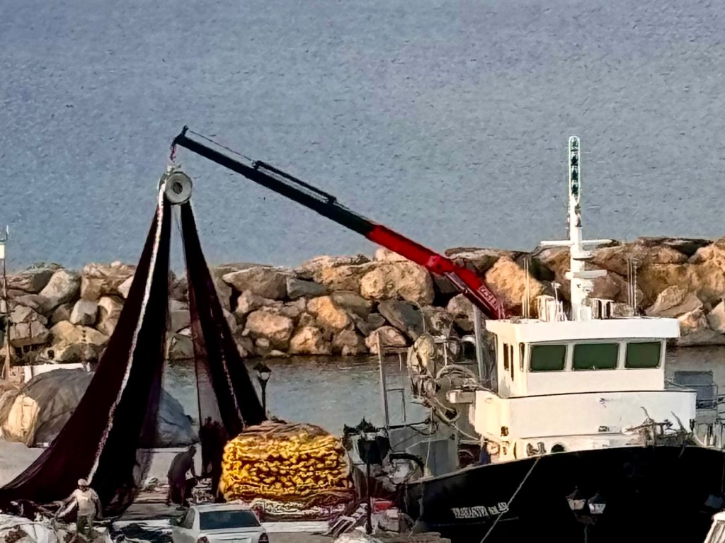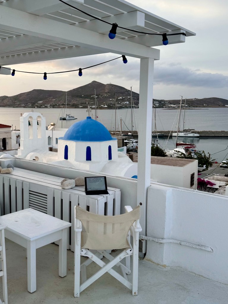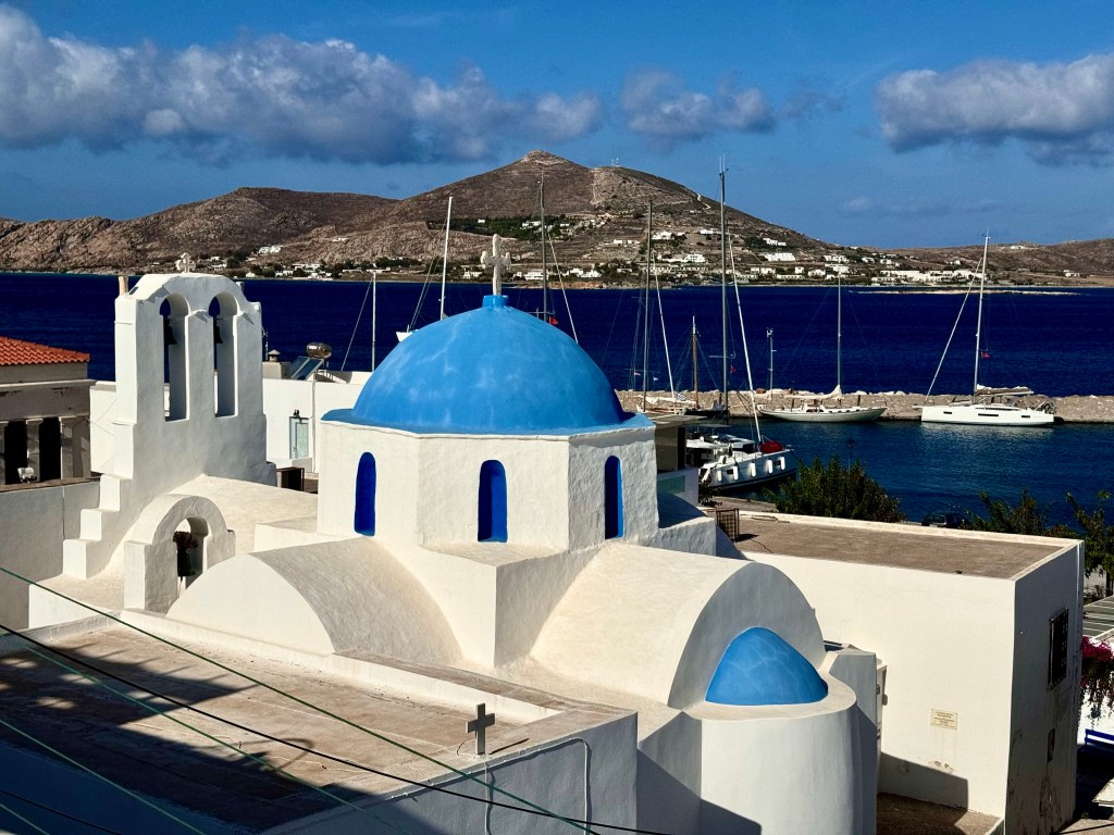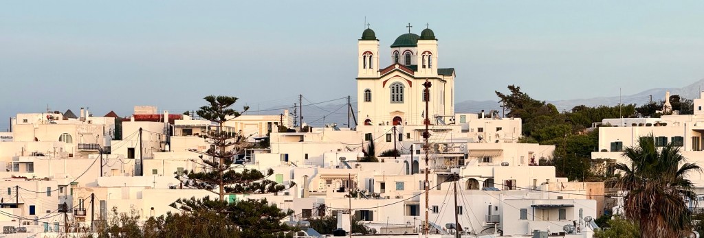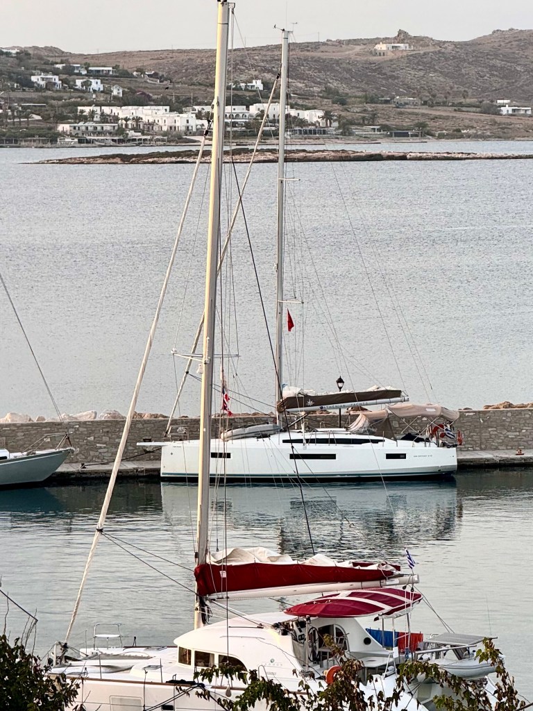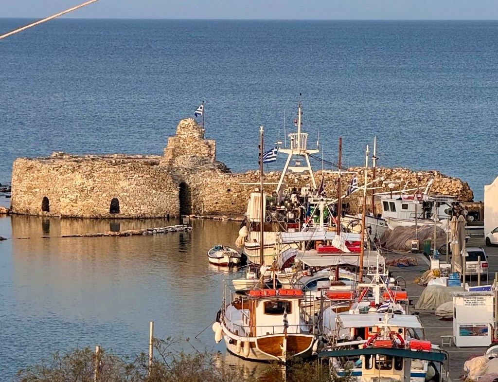 I did at lunchtime walk to a much closer grocery store than the store I didn‘t find yesterday for more basic groceries. On the way I met Efi on the street and her daughter Olga who was just getting out of a car that brought her from the ferry from Athens where she lives.