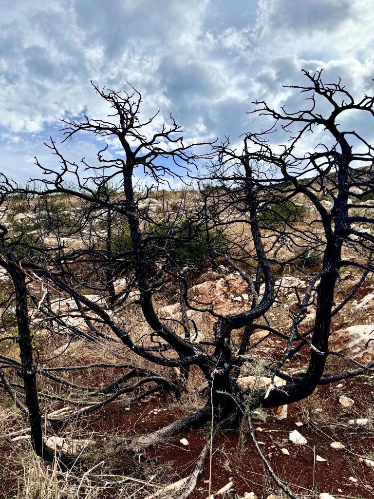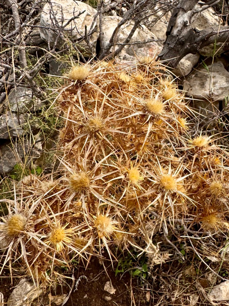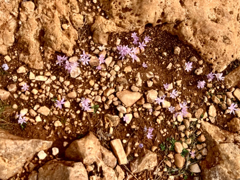 Unfortunately for my 86 year old legs, the trail was not all downhill, there was a long rise in the road over a shoulder of a hill that was uphill. But it didn‘t make too much difference. Going down hill over the smooth but uneven rocks my knees hurt more and more as I wobbled along, very gingerly, trying to avoid twisting an ankle and needing to be carried out. All the way I thought of my friend Sheldon Neuringer who will no longer travel because his knees are giving out. He would not have enjoyed the walk.