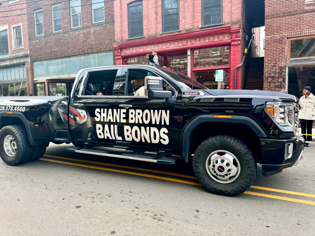 Following them was Shane Brown’s Bail Bond truck. About half way through the parade were two monster cars of no particular significance, one of them with a flat tire.