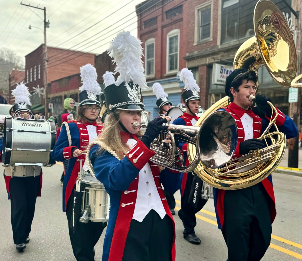 Then came the Madison High School marching band, the Patriots, in red white and blue revolutionary war uniforms.