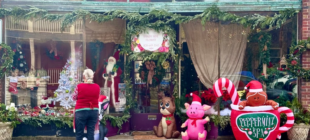 Small town Marshall has a number of events during the year which are a way of bringing the town together and having a good time. I’ve mentioned before that Marshall, the County seat of Madison County, a conservative heavily Republican county. But it is increasingly the home of outsiders who are trying to escape urban life for the simpler country life as well as a number of well to do retirees and wealthy people from states that are hot in the summer who have vacation homes here. So Madison County has two communities, old timers whose mountain families have lived her for two hundred years and more liberal outsiders who have moved here for the quiet and the country life. The parades and other celebrations held in Marshall reflect this split. The Pirates and Mermaids Parade held in midsummer is a wacky celebration by newcomers to Marshall as is the Christmas sale of homemade crafts held on the island at the old high school building that now houses artist’s studios.