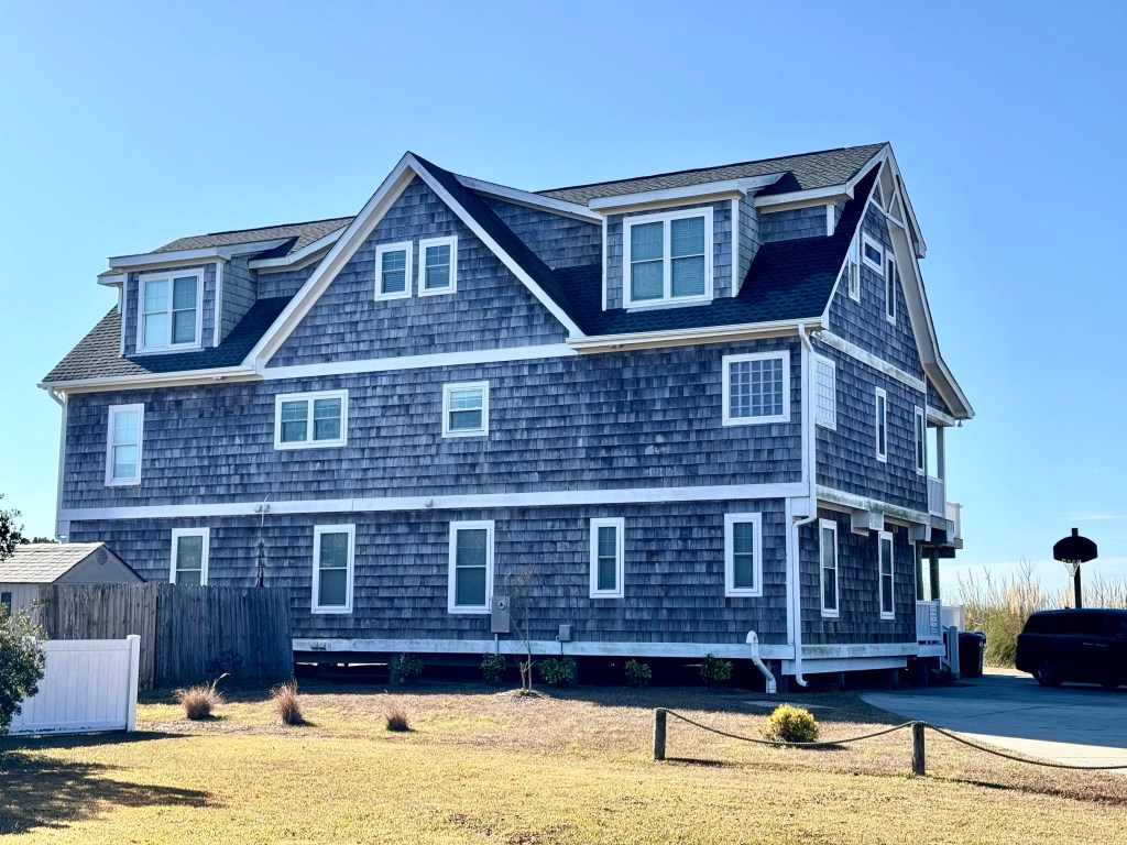 After a bagel breakfast some of us walked on the beach that is only a few hundred yards across from our inland waterway side, where we have a great view of the water, across a narrow strip of land, with the ocean on the other side. We are in a huge rental house with endless bedrooms for the 22 people who will be here.