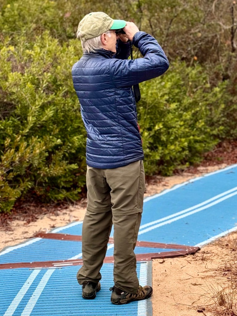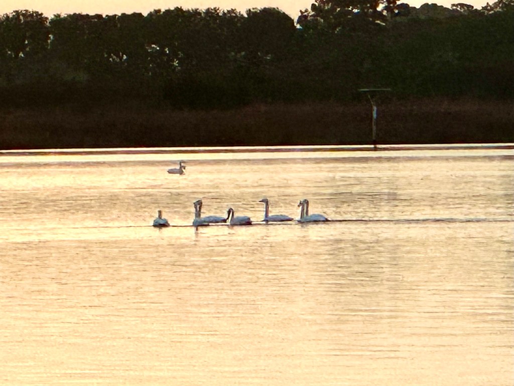So today he led about five of us on a birdwatching walk in the nearby Back Bay National Wildlife Refuge. We saw a few swans at a distance, but the walk, itself, though swampland between the Atlantic Ocean on one side the the inland waterway on the other was beautiful.