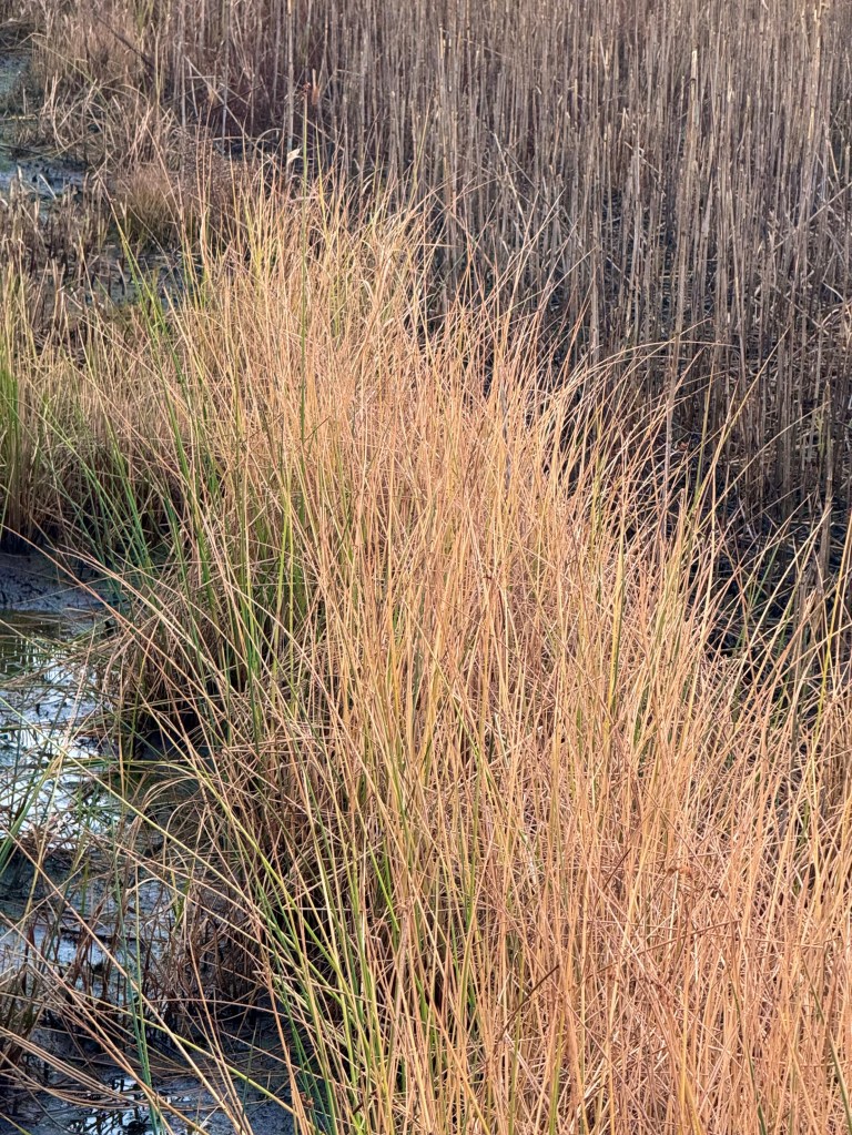All of this was going through my head as we walked. But what was mainly touching me was the beautiful of the shades of brown of the grasses of the refuge and the beautiful clear views of the water on each side. It was a beautiful walk.